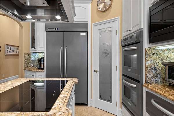 The chef's kitchen is equipped with a Bosch induction cooktop, KitchenAid refrigerator, and reverse osmosis system, making it as functional as it is elegant. The home also boasts 4 air conditioning units, an enclosed sunroom with A/C, and a paid solar system with battery backup for energy efficiency. Step outside into a backyard oasis featuring a pebble tech saltwater pool, outdoor fire pit, and lush landscaping framed by mature trees--including lemon, orange, pomegranate, pear, and apple.