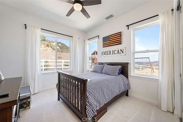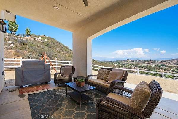NEW CONSTRUCTION! SINGLE-STORY 5-ACRE ESTATE WITH MASSIVE VIEWS IN THE HEART OF LA CRESTA! Step into this on-trend home with its 20-foot family-room ceiling and gaze through the floor-to-ceiling wall of windows to unobstructed views of this prestigious Santa Rosa Plateau ranch community, the Murrieta/Temecula Valley & beyond to the majestic mountains, including Mounts San Jacinto & Palomar. Imagine sipping your daily coffee, watching mesmerizing sunrise views and spotting Temecula Wine Country's hot-air balloons! This home was built with love, evident with every designer detail, including a chefs' kitchen with double Thermador ovens, Subzero fridge, 2 dishwashers, 6-burner + griddle gas cooktop, pot-filler & massive island. The high-end materials, consistent throughout the home, include exposed wood beams, floating shelves, stylish barn doors, designer hardware, trendy lighting & luxurious marble countertops. Retreat to your primary suite with high ceilings, large slider to the backyard, epic views and a beautifully appointed primary bathroom with free-standing soaking tub, walk-in shower & generous walk-in closet. Two guest bedrooms reside on the other side of the home, and just off the Great Room, you will find a sweet bonus room with skylight and barn doors - perfect for office, home schooling or hobbies. Through the well-appointed laundry room, find direct access to the garage and spacious game/bonus room. Built as a forever home, this property offers lucky new owners an opportunity to live in comfort and luxury while making the grounds your own. Ready for your own stamp, the back yard, already appointed with a covered patio, ceiling fans and spa outlet, is perfectly situated for a future infinity pool, outdoor kitchen and/or unforgettable entertainment area - all with VIEWS VIEWS VIEWS! Paid for Solar and position on one of La Cresta's best view streets are the icing on this adorable single-level Plateau gem! *Discover the Santa Rosa Plateau Lifestyle...5-acre minimum parcels (10-acre minimum. in SR West), just minutes to schools, restaurants, hospitals, grocery stores, 15 Fwy & Temecula Wine Country. Enjoy this peaceful ranch community w/no commercial businesses, robust social activities, miles of private community trails & 1000s of acres of Ecological Reserve...All less than 1.5 hours from LA, SD, OC, Palm Springs & Big Bear. Discover the country, yet convenient, lifestyle of La Cresta, Tenaja & the Communities of the Santa Rosa Plateau!