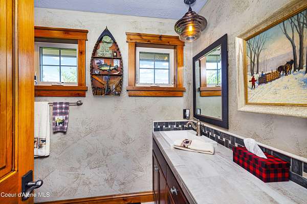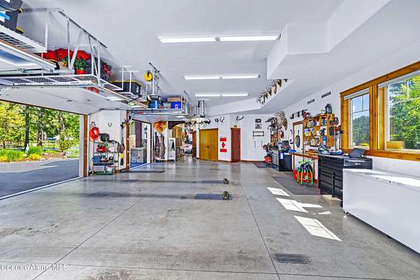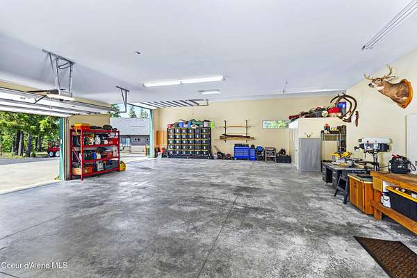 A rare generational estate with breathtaking views of Lake Coeur d'Alene and Lake Fernan, this 2.78-acre gated retreat offers an extraordinary blend of luxury, privacy, and timeless design. Surrounded by 17 acres of protected conservation land, the level, professionally landscaped grounds create a serene, secluded atmosphere just five minutes from downtown Coeur d'Alene. At the heart of the estate is a 4,620 sq ft custom residence and 2018 Parade of Homes winner, showcasing hand-crafted post-and-beam architecture, soaring 20-foot ceilings, and impeccable finish work throughout. The home features 3 bedrooms, 3.5 bathrooms, and an expansive upper-level bonus room. A chef's kitchen, flooded with natural light, includes stone slab countertops, custom cabinetry, a spacious walk-in pantry, and large windows framing mountain views. The master bedroom offers spa-like comfort with a luxurious ensuite bath, while the attached 5-car garage accommodates collectors and adventurers alike. Outdoor living is exceptional, with a full pickleball court, sunken fire pit, hot tub pad, and outdoor kitchen with built-in BBQ, all designed for year-round enjoyment. A separate 1,000 sq ft guest house includes 2 bedrooms, 2 bathrooms, a full kitchen, living area, and private entrance perfect for guests, multi-generational living, or staff. Connected to the guest quarters is a massive 60' x 45' heated shop with 15' ceilings and a 14' overhead door, ideal for RVs, boats, or large-scale projects. Framed by forested ridgelines and frequented by elk, this estate offers unmatched natural beauty and function on flat, usable land. More than a home, it is a legacy property built for generations to come, offering privacy, panoramic views, and world-class living in North Idaho's most coveted location.