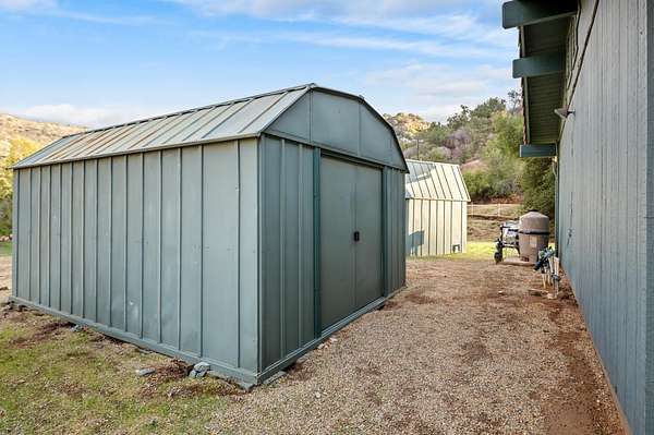 Set in the scenic foothills of Squaw Valley, this inviting single-story home offers peaceful living with sweeping views and versatile amenities. Featuring 3 bedrooms and 1.75 baths, the layout is both functional and comfortable. For those buyers with a moderate down payment available, an assumption of the current FHA loan may be possible for qualitied applicants. Current assumption amount is approximately $340,000 at a current interest rate of 3.75%. Buyer to verify these amounts during any assumption review process. The attached garage provides convenient access, while two additional storage/craft sheds, one with power, offer flexible space for hobbies, tools, or seasonal items. The property is fully fenced, cross-fenced, and gated, making it a great fit for those considering animals or simply seeking added privacy. Inside, enjoy a cozy wood-burning stove, generous natural light, and a brand-new AC unit with warranty. The home also includes a water softener system and a well pump replaced just over two years ago, adding comfort and peace of mind for rural living. A modest pool offers a refreshing spot to lounge on warm valley days, framed by open skies and exceptional views that define the property's charm. Whether you're looking for a quiet retreat, a place to grow, or a home with room to roam, this property is ready to welcome its next chapter. Listing agent is related to sellers life partner.