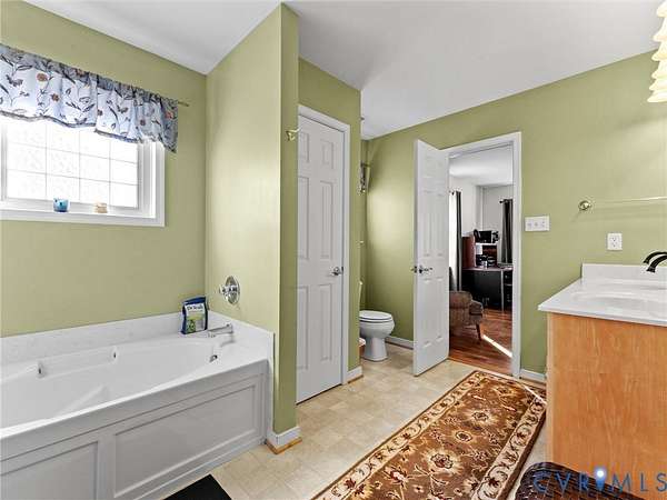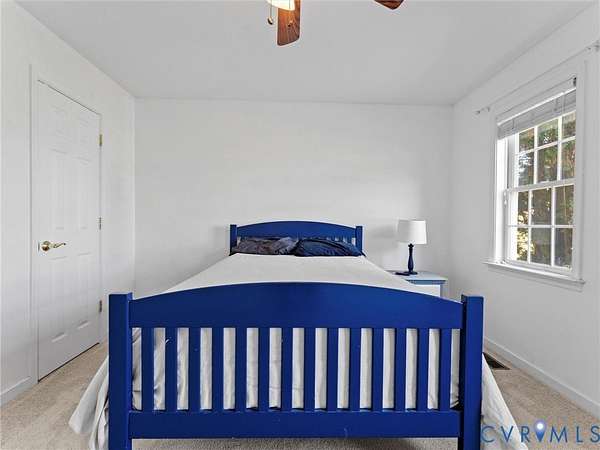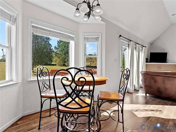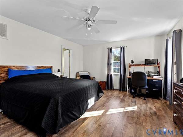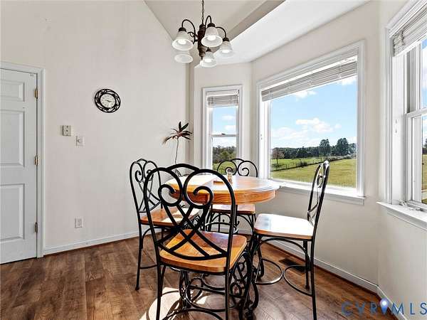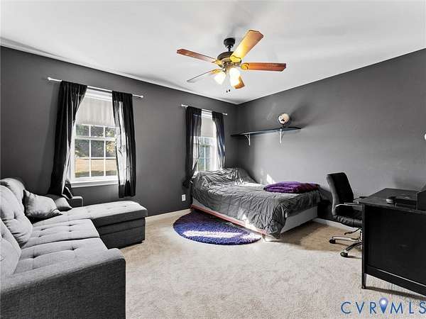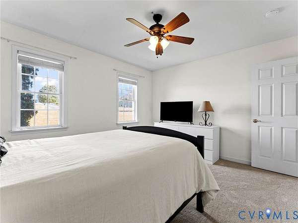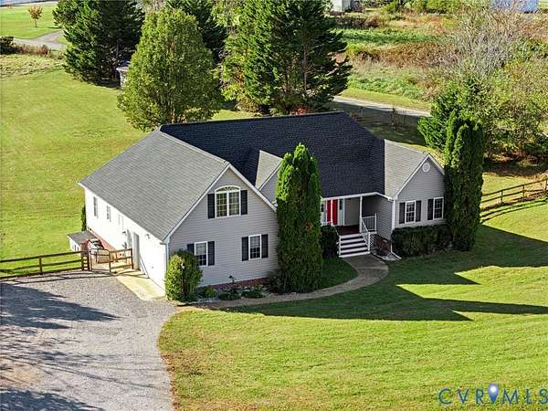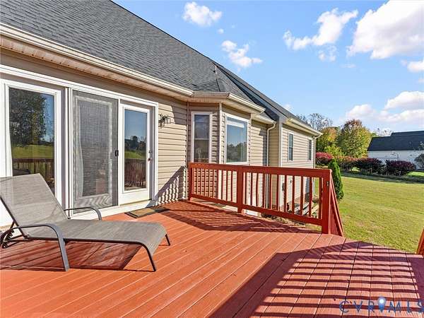 Welcome Home to this beautiful 4-bedroom, 2-bath home w/ 2,066 sq.ft. of comfortable living space on 2.48 peaceful acres. The inviting two-story foyer w/ 9-foot ceilings, hardwood floors & a coat closet for guests. The main gathering area has 9-ft ceilings, LVP flooring, a cozy corner gas fireplace, ceiling fan w/ light & French doors that fill the space w/ natural light. Access to the large back deck that is perfect for relaxing or entertaining. The eat-in kitchen shines w/ recessed lighting, pantry, stainless steel refrigerator, smooth-top stove, built-in microwave, dishwasher & a bright bay window dining area that overlooks the backyard. A flexible front room can serve as a formal dining area or family room, w/ hardwood floors, a chandelier & charming chair rail molding. Your first floor primary suite offers a quiet retreat w/ plush carpeting, walk-in closet, & private ensuite featuring a double-sink vanity, walk-in shower, & a deep bathtub perfect for unwinding after a long day. Two additional first-floor bedrooms in the other side of the home also has new carpeting & closets, w/ a full hall bath & linen closet. The first-floor laundry room includes built-in shelving & connects directly to the two-car garage which is ideal for a drop zone. Upstairs, the spacious fourth bedroom w/ new carpet also has ample space for a sitting area or study nook. Step outside to enjoy the large deck & expansive backyard, offering plenty of room to play, garden, or simply take in the peaceful setting. The views are spectacular at sunset! Updates include New Roof in 2022, Water Heater 2021. The immaculate interiors & serene surroundings offers the perfect blend of comfort & tranquility! Join the lake membership, relax on the beach or enjoy the 90 acre lake-fishing, w/ boating & swimming located right down the street as well as Mill Quarter Public Golf Course. The Village of Powhatan is right around the corner featuring dining, entertainment, sporting events, farmers market, YMCA, a park, walking paths & library.