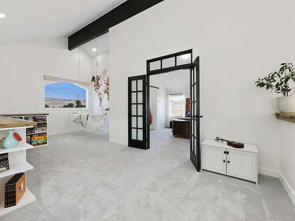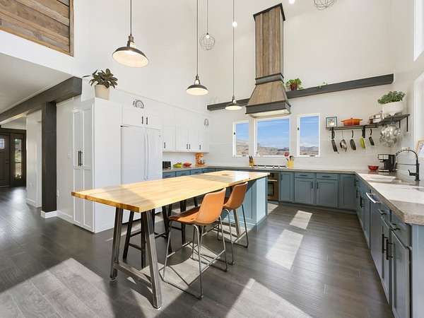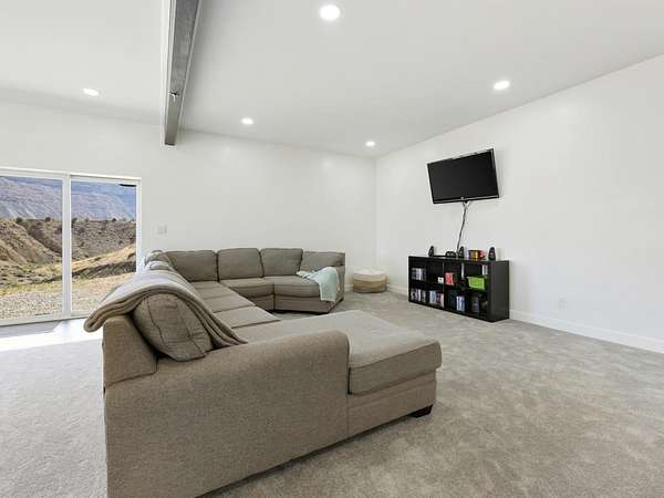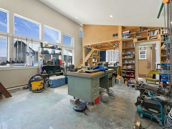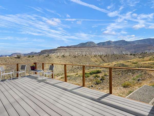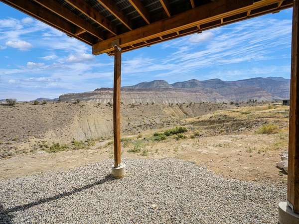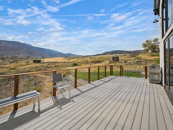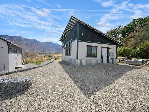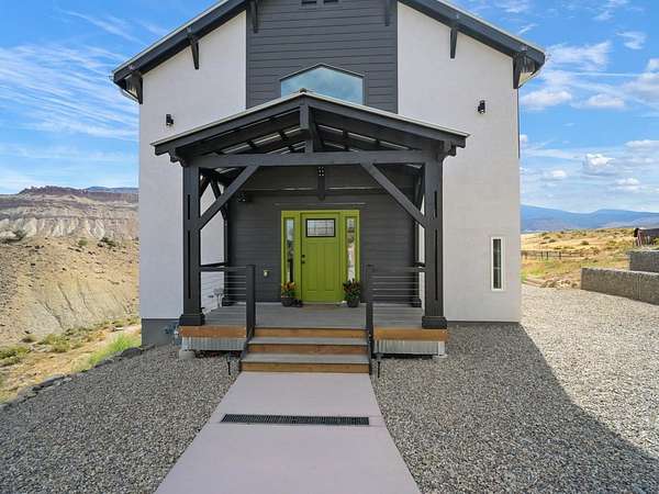 Perched high on a bluff with panoramic views of the high desert and vineyard country all around, this custom-built beauty sits on over two acres and was designed to be truly unique. From the moment you step inside, you'll be greeted by sunlight pouring through massive windows, soaring ceilings, and stylish modern finishes that make this home stand apart. The main living space is wide open and filled with natural light, with striking ceiling heights, bold accents, and a sleek flow perfect for entertaining or simply soaking in the scenery. A cozy fireplace anchors the living room, while the wall of windows frames those unforgettable Palisade vistas. The kitchen is a showpiece - solid concrete countertops, modern appliances, and a massive island with butcher-block counters and plenty of seating. Statement pendant lights, open shelving, and designer cabinetry add both charm and function, while every detail is oriented toward the view. Upstairs, a loft overlooks the living space, giving you a bird's-eye view of the great room and mountains beyond. The primary suite feels like a retreat of its own-bright, spacious, and directly connected to a five-piece en-suite bathroom with style and personality. A stand-alone tub with a pop of color, custom dual vanities, playful patterned floors, and a walk-in shower combine to create a space that feels modern yet refreshingly fun. Working from home or need to get creative? You'll love the dedicated office/craftspace. And for playtime, the loft includes space for reading nooks, games, or even a swing by the big picture window. Head downstairs to the fantastic basement bonus room, the perfect setup for movie nights, game days, or simply stretching out. Two additional bedrooms and a stylish four-piece bath round out this level, giving guests or family their own private space. Step outside and discover even more to love: a 20x36 workshop - perfect for projects, hobbies, or extra storage. The terraced yard adds visual interest and plenty of room to entertain outdoors or enjoy stargazing in the quiet of the high desert evenings. This property is modern, sleek, and truly unlike anything else on the market - a rare chance to own a Palisade escape with views that go on forever. Come see it today, and make this custom retreat your own!
