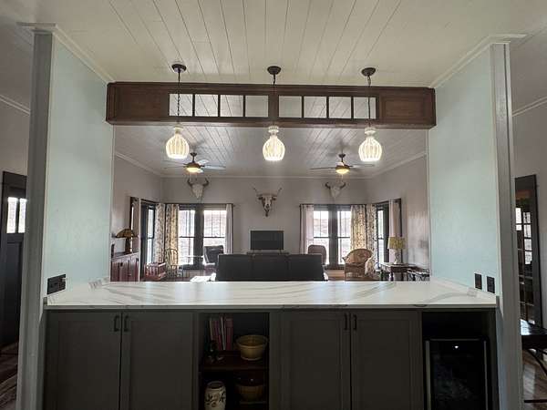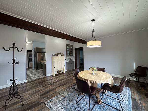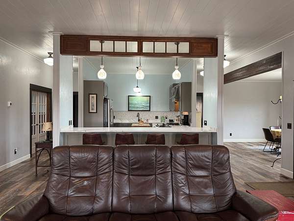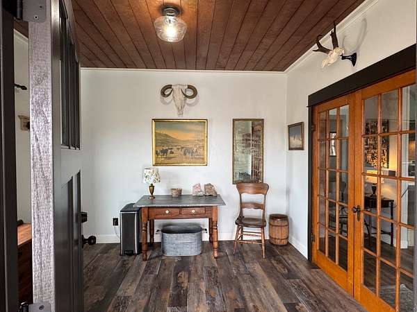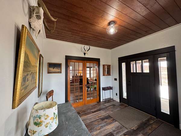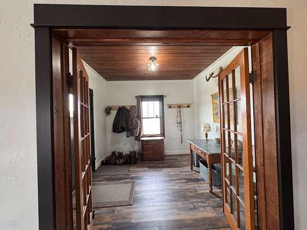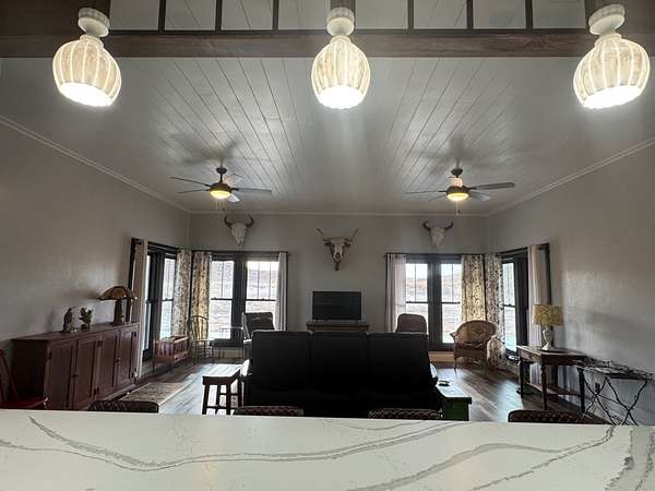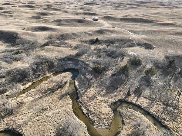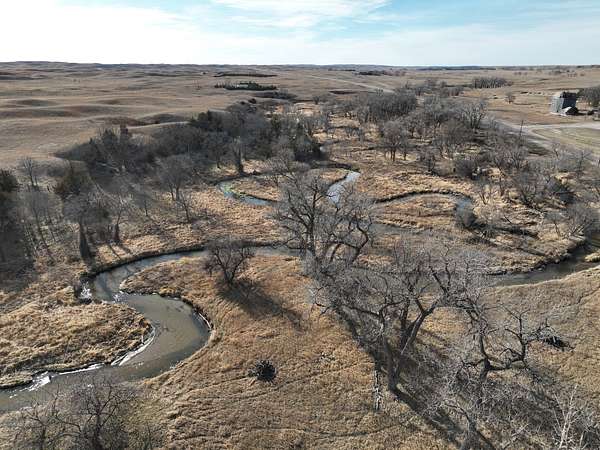 A rare opportunity to own Sandhills pasture with live water, recently completed 3 bedroom/2 bath home, and shop with apartment. Discover the perfect blend of functionality and rural beauty with this exceptional 191+/-acre Sandhills property just 12 miles from Valentine, NE. Featuring rolling native pasture, the land is fully fenced and ideal for livestock, with the added benefit of reliable live water running through the property. The creek bottom, lined with deciduous trees and brush, attracts a variety of wildlife, enhancing the property's natural charm and offering opportunities for observation or hunting. The improvements make this offering truly stand out. A recently completed, custom-built 2,592 sq.ft. home showcases rough-cut Douglas fir, creating a warm, inviting atmosphere that complements the surrounding landscape. A 32' x 48' shop adds incredible versatility, complete with three overhead doors and an apartment featuring a comfortable living area, bathroom, and bonus room-perfect for guests, rental income, or just additional space. The framework for a barn will remain along with the materials to finish. A welcoming entry sets the tone for the home, highlighting the thoughtful use of vintage repurposed items throughout. The kitchen is truly the heart of the home, featuring custom cabinetry, stainless steel appliances, and quartz countertops. A large island with transom and pendant lighting add vintage flair while opening seamlessly to the living area. Abundant natural light and sweeping Sandhills views make this one of the most enjoyable spaces in the home. The separate dining area features a convenient pass-through window from the kitchen, making it ideal for sit-down meals or entertaining guests. A pantry is nearby to store kitchen overflow. The home offers three bedrooms, including a spacious primary suite complete with two walk-in closets, antique built-in, and a private en suite bathroom. The bath features a custom-made double vanity, a separate toilet area, stand-alone shower, and a relaxing soaker tub. The second bedroom includes a cozy reading nook and direct access to the second bathroom, which is conveniently accessed from the hall. A possible third bedroom is currently utilized as an office, offering flexibility to suit your needs. The laundry room continues the home's unique character, featuring a reclaimed enameled steel sink/marble backsplash, complementing cabinetry, and a functional folding table. Step outside to enjoy the expansive wrap-around deck and covered porch-an ideal spot to unwind, take in the views, or add a hot tub for year-round relaxation. Whether you're looking to expand your operation or enjoy a private retreat with income potential, this property delivers space, resources, and convenience in one remarkable package. Average Monthly Utilities: Electric $175