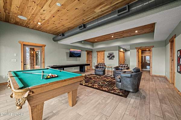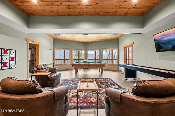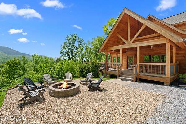 This stunning 5-bedroom, 3.5-bathroom Southland Log Timber Frame Home offers approximately 4300 square feet of luxurious living space on a private 2.89-acre lot with breathtaking, elevated mountain views. Located int eh heart of Wears Vallely, this home is just 15 minutes from Pigeon Forge, 30 minutes to Gatlinburg, and a short drive to the Wears Valley entrance of the Great Smoky Mountains National Park. Designed for both relaxation and entertainment, the home features soaring cathedral ceilings, abundant windows that fill the space with natural light, and a grand stone gas fireplace in the great room. The gourmet kitchen includes custom cabinetry, an oversized island, and premium appliances, making it ideal for hosting. a dedicated game and home theater room provide additional entertainment opportunities. The expansive wrap-around deck on the main level is perfect for outdoor living and offers space for a future outdoor kitchen. The walkout lower level features a hot tub and a scenic outdoor fire pit. This home is pre-wired for smart home capabilities, including Sonos audio and music, a security system, and high-speed Wi-Fi. It is also wired with a 100 AMP service to accommodate a future garage addition. A high-efficiency three-zone HVAC system ensures year-round comfort, while an instant hot water heater UV light water filter, particle sediment filter, and water softener add to the home's modern convenience. Currently sleeping up to 12 guests. Adding a sprinkler system could further increase occupancy and maximize rental income. This property offers exceptional short-term rental potential with projected annual revenue of $175K+. Whether as a luxury mountain retreat or an investment opportunity, this home is truly one of a kind. Schedule your private showing today.