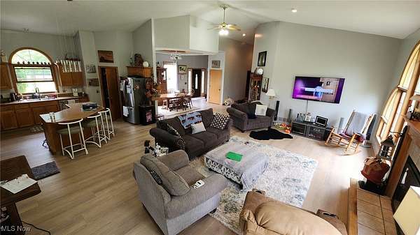 Discover peaceful living just minutes from the interstate in this beautiful brick ranch situated on nearly 50 private acres! This one-of-a-kind property combines comfortable living with exceptional outdoor amenities - perfect for those seeking space, privacy, and the freedom to live how you want. This beautiful home features 3 bedrooms and 2.5 bathrooms, with an open-concept main living area filled with natural light. The spacious kitchen offers ample cabinetry, and the primary suite includes a huge private full bath. A large finished basement provides generous space for storage or potential future living space. Outside, the property spans gentle laying fields, wooded areas, and cleared land. Enjoy summer days in the above-ground pool, and take advantage of the massive 60x60 clear-span barn, ideal for equipment, animals, or hobbies. A private pond adds to the scenic beauty and offers opportunities for fishing and relaxation. You'll also find mature fruit trees, perfect for enjoying fresh seasonal produce. Tucked away just off the interstate, the secluded private driveway ensures peace and privacy while remaining conveniently accessible. Enjoy the best of both worlds - country tranquility with city convenience. Located just off the interstate, you're minutes from town, shopping, and schools, but surrounded by nature, privacy, and room to grow. This is your opportunity to own a piece of paradise with room for hobbies, homesteading, recreation, or simply breathing room. Schedule your private tour today!