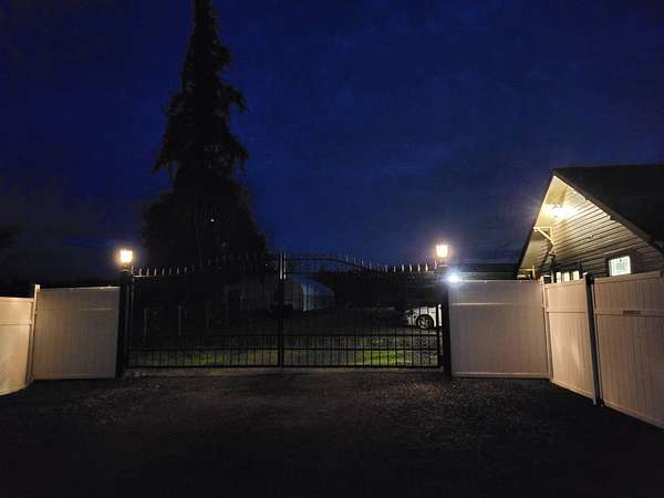 From Scio, Oregon: Gilkey Road is located at the south end of Scio on the main street that goes north/south and heads toward Albany/Lebanon. Drive west on Gilkey Road the property will be to your left. Front entrance features a dramatic white fence and two iron entry gates.