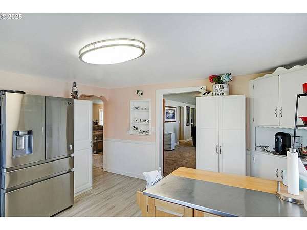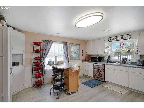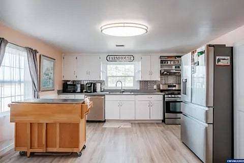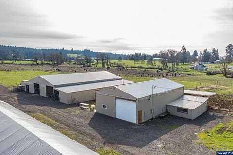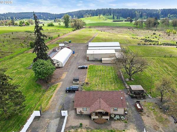 Set in a beautiful and peaceful setting in Scio, Oregon, this well-maintained 24.16-acre small farm homestead offers a rare opportunity to enjoy privacy, productivity, and rural charm. Surrounded by open pasture, mature walnut trees and fir trees, and abundant wildlife, the property showcases the very best of country living with a scenic backdrop in every direction. The property features a scenic three-quarter-mile gravel walking trail, ideal for daily exercise, year-round walking, or quiet enjoyment of the natural surroundings. A small pond enhances the landscape while attracting local wildlife and adding to the property's tranquil appeal. The updated two-bedroom, one-bath home offers 1,288 square feet of comfortable living space with thoughtful improvements throughout, including a cozy wood stove and a fully landscaped front yard that creates a welcoming first impression. Agricultural and income-producing amenities are extensive. The property includes a 7,560-square-foot livestock barn with an indoor arena installed within the structure, offering three horse stalls with room for additional stalls, along with two chicken coops built into the barn. Additional improvements include a commercial greenhouse with electrical service and fans, and a 30' x 96' structure well-suited for equipment storage or agricultural operations. A large 32' x 62' shop on a concrete slab features an office, a carpeted gym room, and generous workspace. Newer, high-quality fencing and a custom entry gate provide both functionality and an impressive entrance. The excellent water well supports residential and agricultural needs, and productive pasture enhances the property's versatility. An RV power hookup is conveniently located near the greenhouse and includes septic access and fiber-optic-supported high-speed wireless internet, offering added flexibility for guests, extended stays, or agricultural operations. Designated agricultural land offers exceptional income potential, including approximately 1,100 Christmas trees scheduled to be harvestable in 2026. Whether you envision a working farm, equestrian property, or private homestead, this exceptional acreage delivers endless possibilities in a truly beautiful rural setting. Gym equipment not included in sale of property.