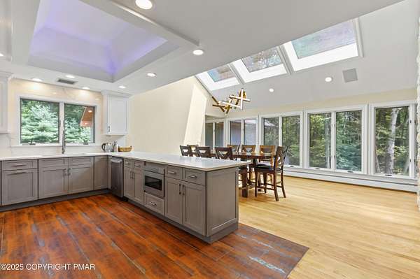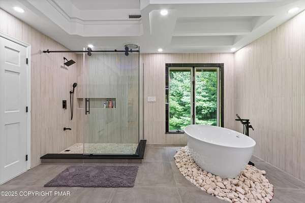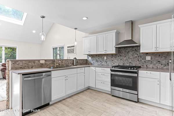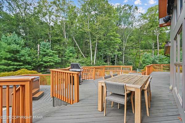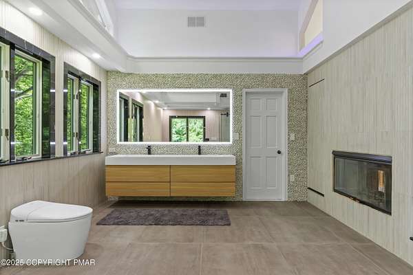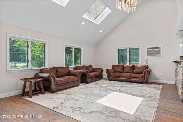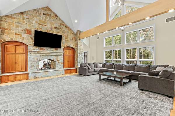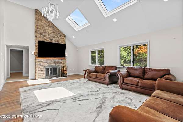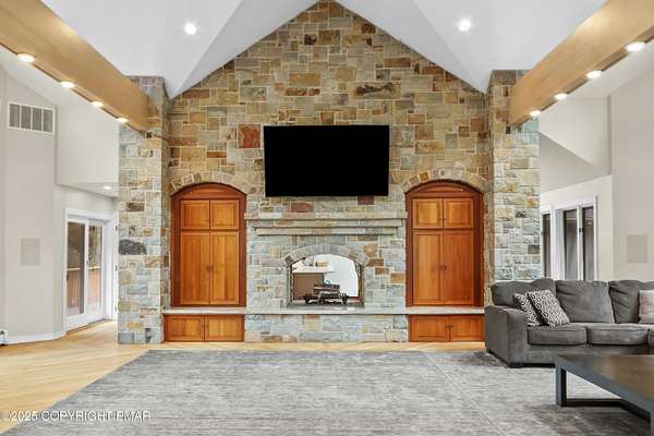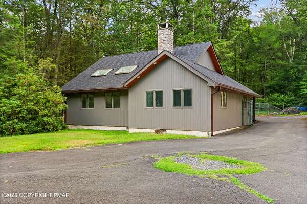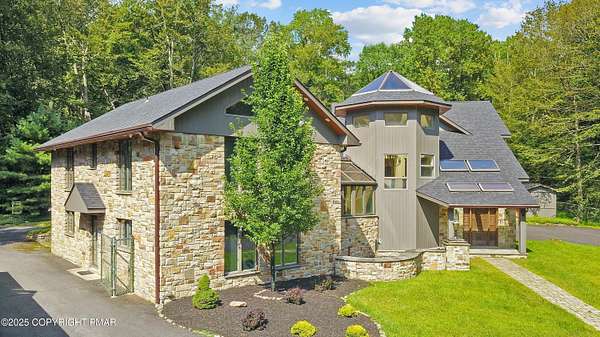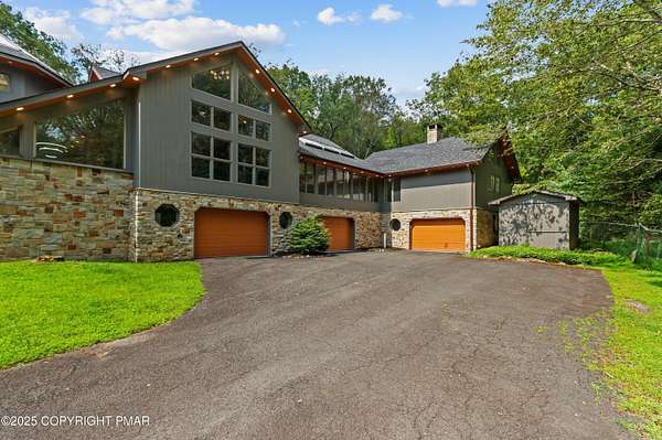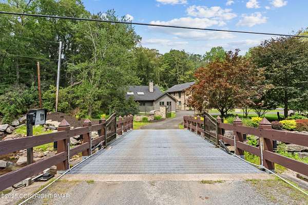 ESCAPE TO YOUR OWN PRIVATE PARADISE with this EXCEPTIONAL 4BD/5BA smart home estate, privately set beyond a charming bridge over the tranquil Pocono Creek. Just 1 mile from Camelback Resort, this SPACIOUS retreat showcases a dramatic Great Room with soaring ceilings, a floor-to-ceiling stone fireplace, & a custom WET BAR, ideal for entertaining. A sun-drenched sitting room invites relaxation, while the gourmet Kitchen impresses with granite counters, rich cabinetry, & high-end appliances. The ELEGANT primary suite features its own fireplace, a spa-inspired bath, & a walk-in closet. 2 generously sized bedrooms & 2 baths on the other end. The FULLY FINISHED LOWER LEVEL provides a versatile rec room, additional bedroom, & 2 baths. Outdoor living shines with a multi-tiered deck, hot tub, & above-ground pool, all surrounded by lush natural beauty. A 4-car garage & separate 2BD/1BA guest house with full kitchen & fireplace complete this remarkable property. Schedule your showings now and Ask how to receive a $4,000 lender credit towards closing costs or lowering your interest rate!