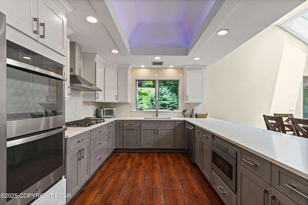 - Dishwasher, Gas Cooktop, Gas Oven, Gas Range, Microwave, Refrigerator, Stainless Steel Appliance(s), Washer, Water Heater