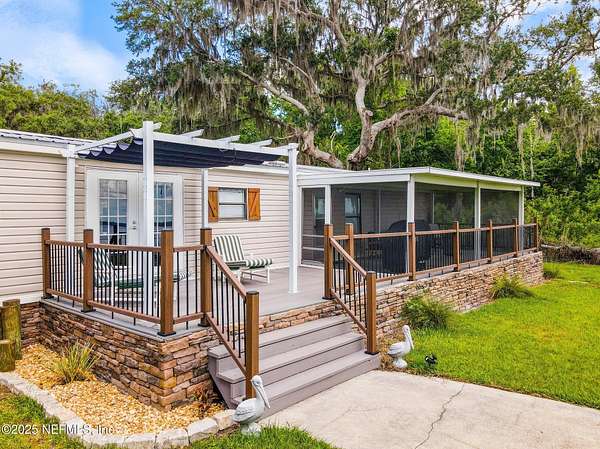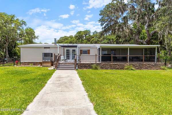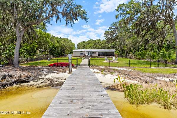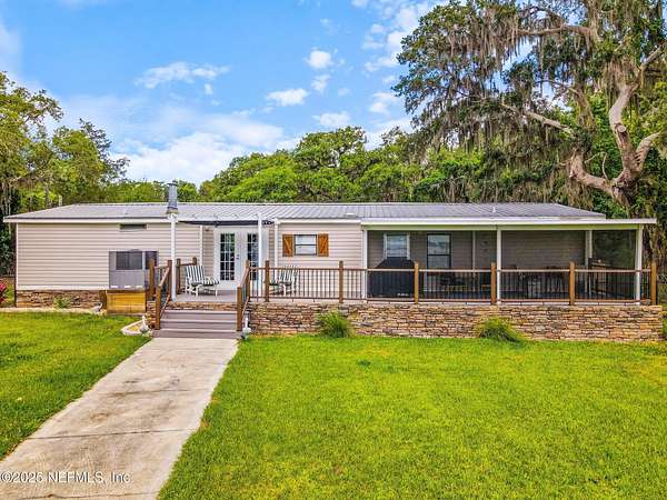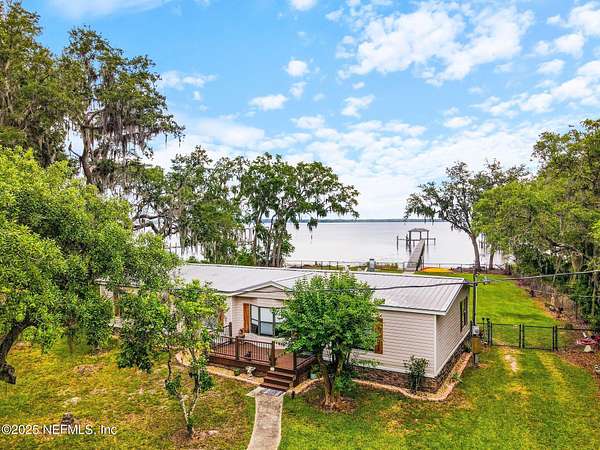 Welcome to 386 Cedar Creek Rd-your serene escape on the St. Johns River. Set on 2 private, tree-lined acres, this beautifully updated 4-bedroom, 3-bathroom home offers the perfect blend of nature, comfort, and waterfront living. Enjoy expansive river views from your screened lanai or open-air patio, where peaceful mornings and breathtaking sunsets become part of your daily routine. A true boater's dream, the property features a 340-foot dock with two boat lifts (16,000 lb & 8,000 lb) offering effortless access to the water for fishing, cruising, or exploring Florida's iconic waterways. Inside, you'll find 1,700 square feet of thoughtfully updated living space with two cozy fireplaces and a warm, inviting atmosphere. The property also includes a 20x40 garage-perfect for storing boats, vehicles, or creating a workshop-and two RV hookups, making it ideal for hosting guests or accommodating your adventurous lifestyle. Whether you're looking for a full-time retreat or a weekend getaway, this unique riverfront property offers the peace, privacy, and practicality you've been searching for.