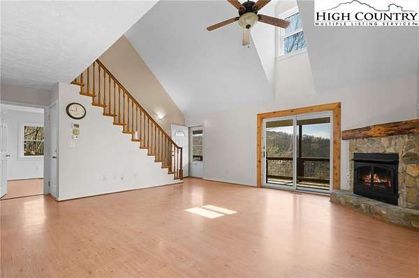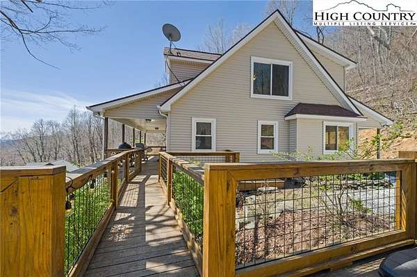 Experience serene mountain living in this inviting 3-bedroom, 2.5-bath retreat situated on 2.46 acres, featuring an open-concept floor plan with a vaulted living room ceiling that fills the home with natural light and creates a warm, welcoming atmosphere. The kitchen is equipped with stainless steel appliances and flows seamlessly into the main living areas. The main-level primary suite offers both convenience and privacy, allowing for comfortable one-level living, while two upstairs bedrooms provide ample space for family and guests while also offering scenic mountain views. Step outside to an expansive outdoor living area with covered porches and an adjoining deck with hot tub, to entertain, unwind, and soak in gorgeous mountain views and colors in every season. Whether you're seeking a full-time residence, second home, or mountain getaway, this property offers the perfect blend of comfort, privacy, and natural beauty. Ideally located just 15 minutes from the conveniences of Boone, Appalachian State