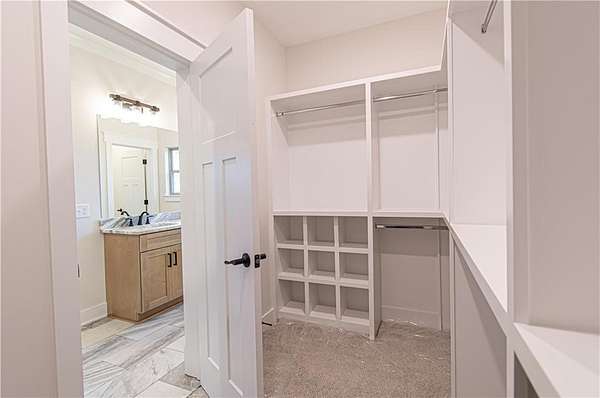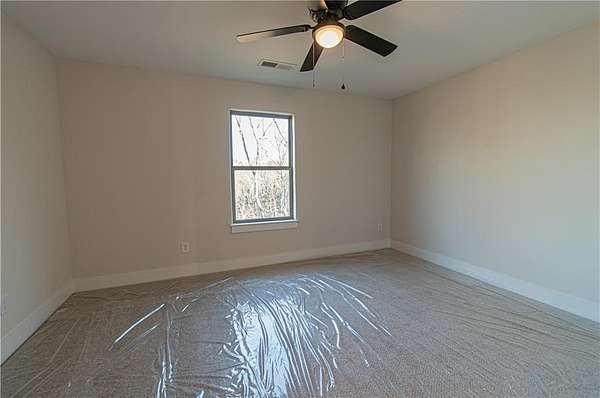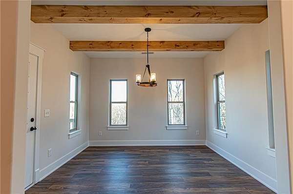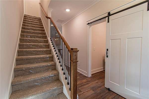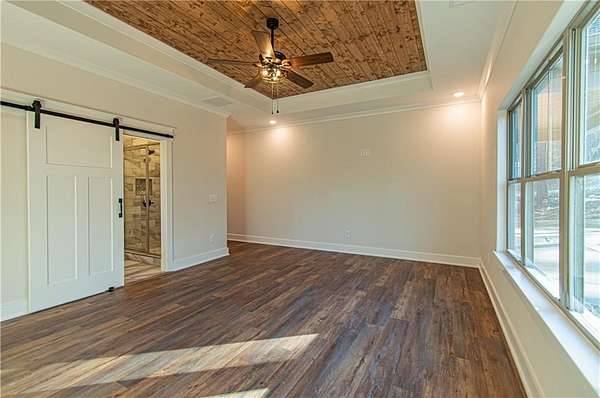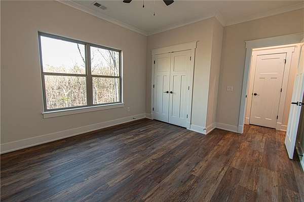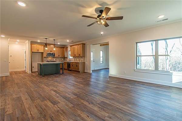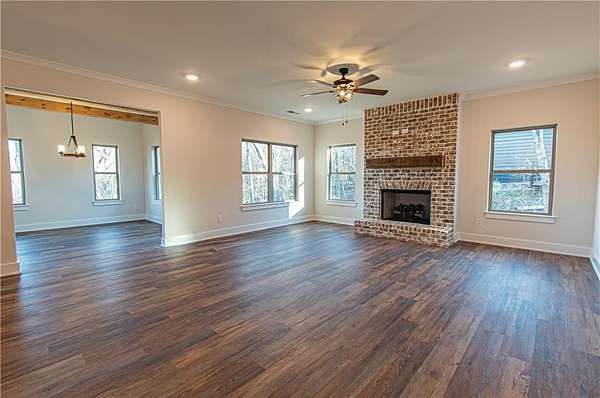 Amazing New Construction Home! Welcome to this stunning 4-bedroom, 3-bathroom new construction home featuring an open, stylish design and a full unfinished basement ready for your personal touch. The chef-inspired kitchen boasts solid wood cabinetry with soft-close doors, leather-finished granite countertops, a spacious center island, stainless steel appliances, and a large walk-in pantry with custom shelving and a frosted glass door. The primary suite offers a touch of luxury with a tongue-and-groove coffered ceiling, a custom wood-shelved walk-in closet, and primary bath featuring a double vanity, large tiled shower, and private water closet. Beautiful LVP flooring flows through the main living areas, while the upstairs bedrooms feature cozy carpeting. The inviting living room centers around a brick fireplace with a solid wood mantle, complemented by crown molding, stained barn doors to the laundry room, ceiling fans in both the living room and primary bedroom, and a tankless water heater for energy efficiency. The home's exterior combines elegance and charm with a brick front skirt, Board and Batten accents, a covered back porch and deck, and a welcoming front porch-perfect for relaxing or entertaining. This thoughtfully designed, open-concept home truly has it all. Schedule your private showing today-this one won't disappoint