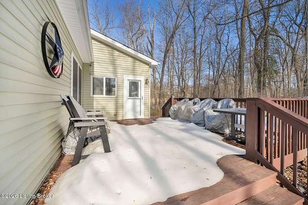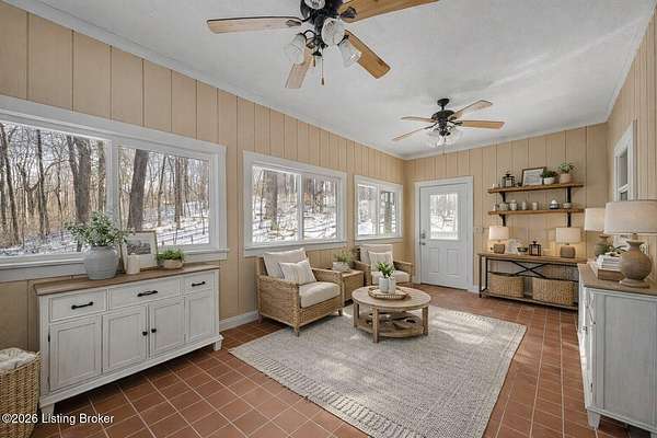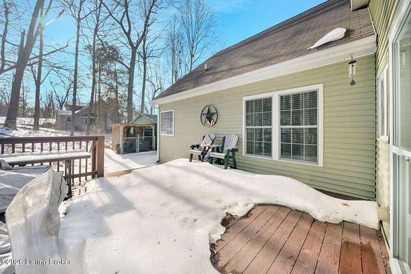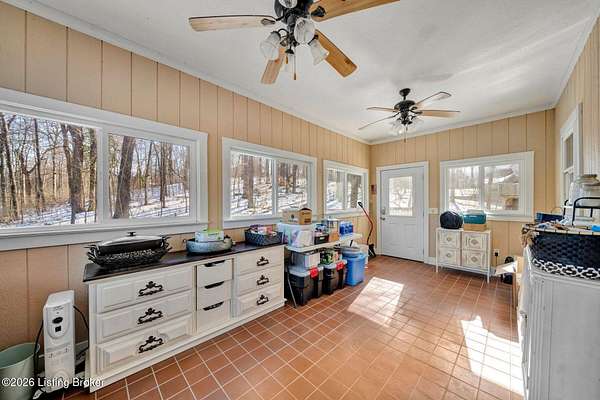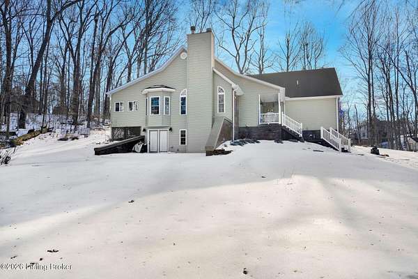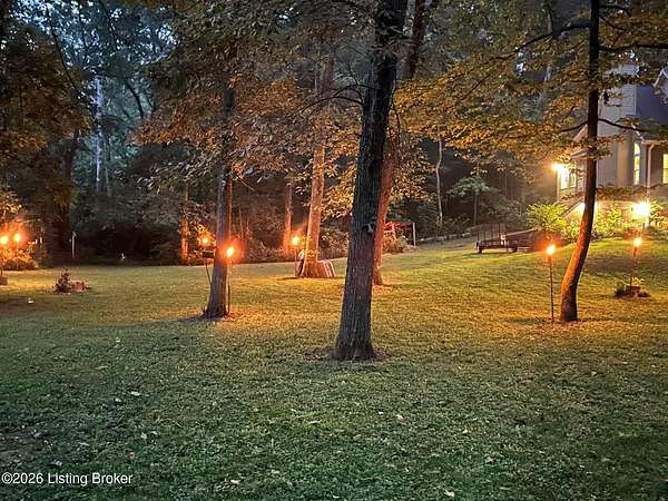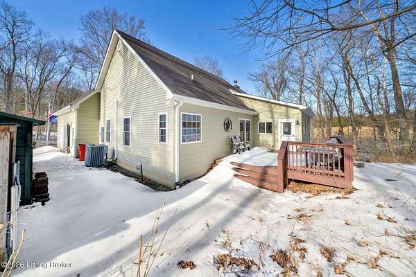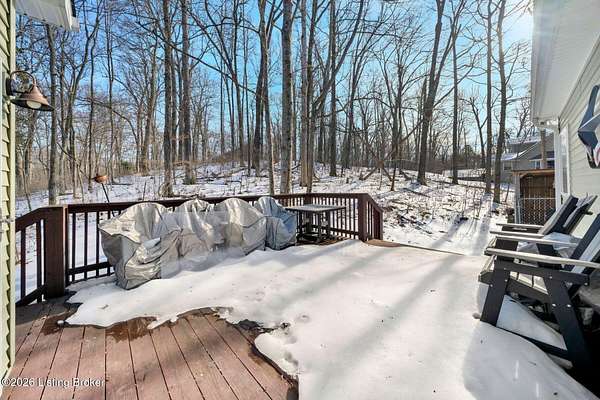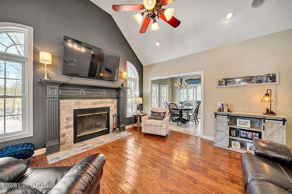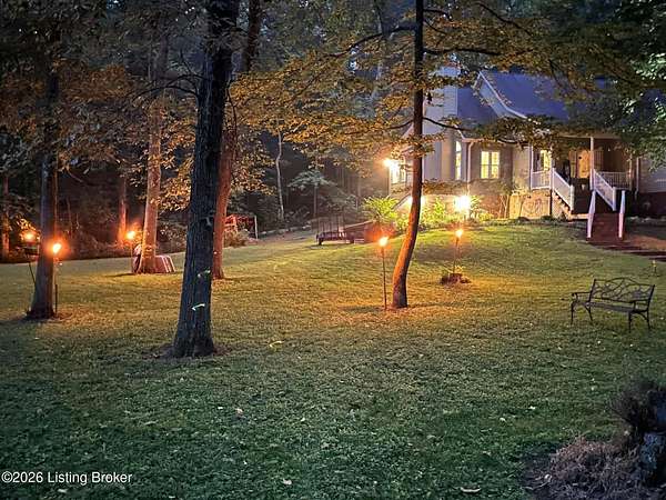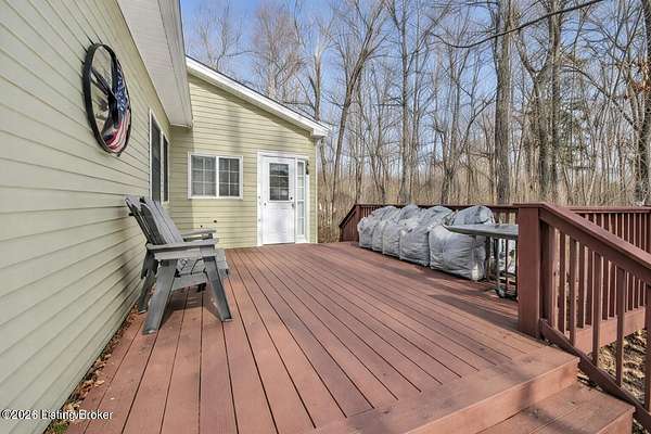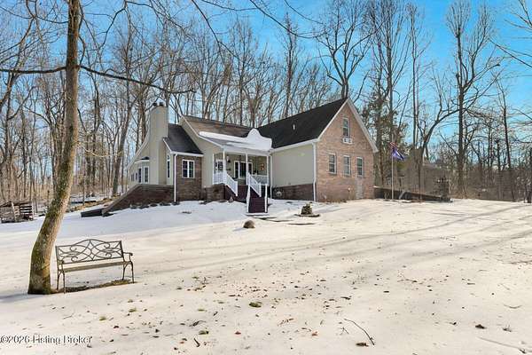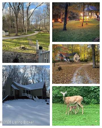 This beautifully maintained home offers approximately 3,500 finished square feet, thoughtfully designed for comfort, flexibility, and entertaining. Situated on a private 1.57-acre lot at the end of the street, the property backs to a park-like setting with peaceful wooded views. The main level features handscraped hickory hardwood flooring, complemented by tile flooring in the kitchen and formal dining room/office/study, and LVP flooring in the main-floor baths. The kitchen is well-appointed with granite countertops and stainless steel appliances, including a double oven, making it ideal for everyday living and hosting. The primary ensuite bedroom offers exceptional storage with both a walk-in closet and an additional separate closet, providing a convenient his-and-hers setup In total, the home includes 3 bedrooms and 4 full bathrooms, with two additional rooms in the basement that could be used as bedrooms, offices, or flex spaces. Two wood-burning fireplaces add warmth and charm on the main floor and one in the finished walkout basement. The basement features laminate flooring throughout, a large family room with fireplace, a bar area with wine fridge, a full bathroom, and a storage room/storm shelter. From the basement, step directly outside to enjoy the serene outdoor setting. The home also includes a sunroom that walks out to a deck overlooking the woods, perfect for relaxing or entertaining. Parking and storage are abundant with a 2-car attached garage plus a 2-car detached carport. A standout feature is the studio apartment above the garage, complete with a private entrance, fully furnished kitchen, full bathroom, and laundry. Previously used as an Airbnb with excellent reviews, this space offers fantastic income potential or serves as a private retreat for out-of-town guests or extended family. This property combines space, privacy, and versatility in a truly special settingideal for those seeking both comfort and opportunity.
