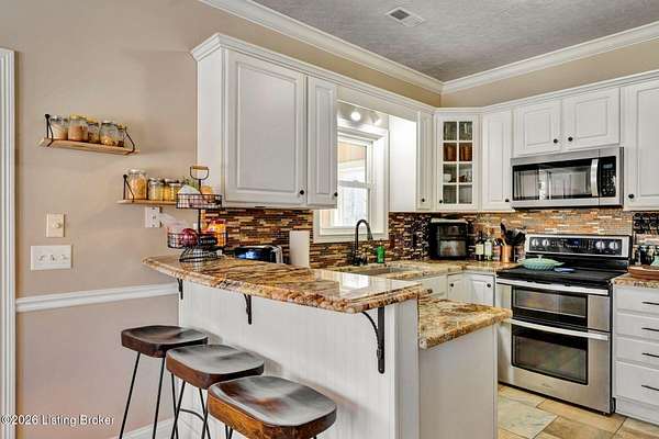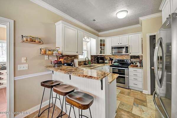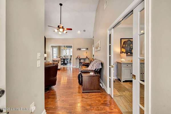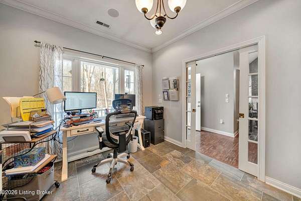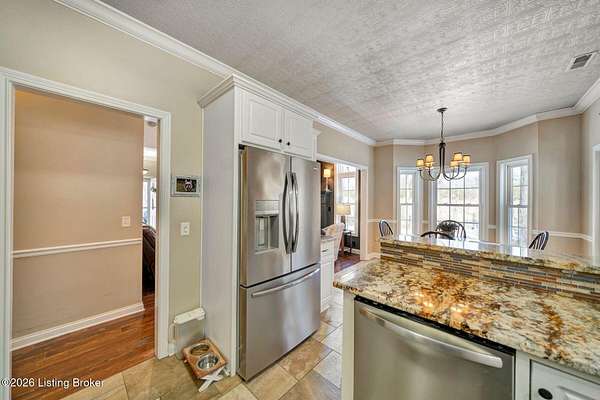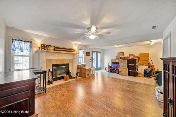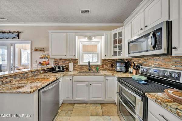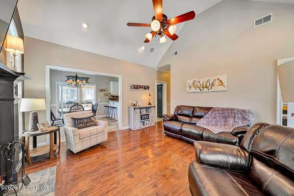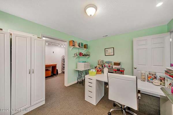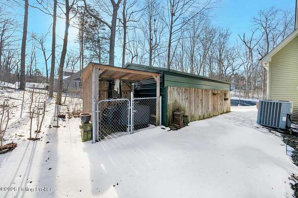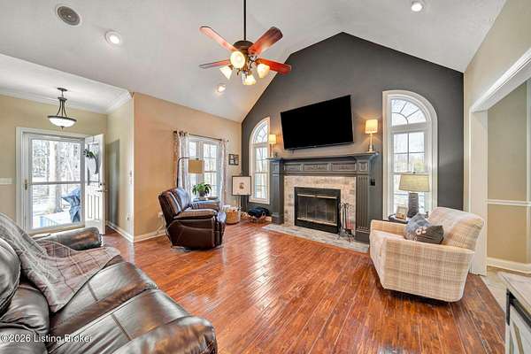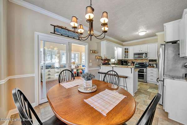 This beautifully maintained home offers approximately 3,500 finished square feet, thoughtfully designed for comfort, flexibility, and entertaining. Situated on a private 1.57-acre lot at the end of the street, the property backs to a park-like setting with peaceful wooded views. The main level features handscraped hickory hardwood flooring, complemented by tile flooring in the kitchen and formal dining room/office/study, and LVP flooring in the main-floor baths. The kitchen is well-appointed with granite countertops and stainless steel appliances, including a double oven, making it ideal for everyday living and hosting. The primary ensuite bedroom offers exceptional storage with both a walk-in closet and an additional separate closet, providing a convenient his-and-hers setup In total, the home includes 3 bedrooms and 4 full bathrooms, with two additional rooms in the basement that could be used as bedrooms, offices, or flex spaces. Two wood-burning fireplaces add warmth and charm on the main floor and one in the finished walkout basement. The basement features laminate flooring throughout, a large family room with fireplace, a bar area with wine fridge, a full bathroom, and a storage room/storm shelter. From the basement, step directly outside to enjoy the serene outdoor setting. The home also includes a sunroom that walks out to a deck overlooking the woods, perfect for relaxing or entertaining. Parking and storage are abundant with a 2-car attached garage plus a 2-car detached carport. A standout feature is the studio apartment above the garage, complete with a private entrance, fully furnished kitchen, full bathroom, and laundry. Previously used as an Airbnb with excellent reviews, this space offers fantastic income potential or serves as a private retreat for out-of-town guests or extended family. This property combines space, privacy, and versatility in a truly special settingideal for those seeking both comfort and opportunity.
