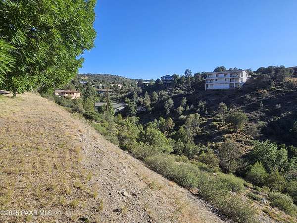 Est $225/mo.41 acres on a sloped lot in Prescott, with utilities at the street! This unique parcel offers a dramatic landscape with steep topography, perfect for those with a vision and creative build! The steep lot is perfect for a walkout basement. Enjoy views from the street and your back deck. Great location, close to downtown, shopping and restaurants! Site built homes only, low annual HOA fee. Drive by, look and make an offer!