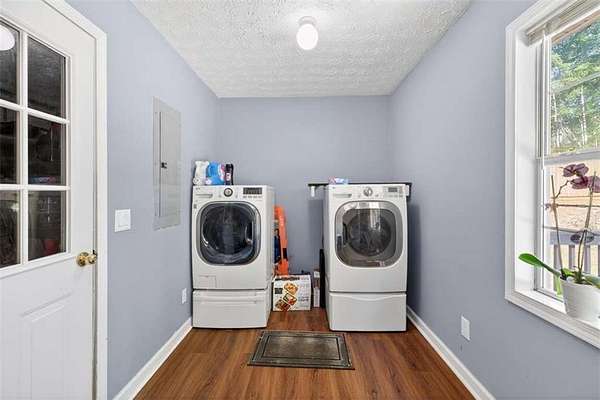 Set privately on 2.56 beautiful acres in Jackson County, this inviting ranch-style home offers the space, flexibility, and setting buyers are searching for. Featuring 3 bedrooms and 2 full baths in the main home, plus an additional full bath located in the garage (not pictured), the layout provides versatility for guests, hobbies, or workspace needs. Inside, you'll find nearly 2,000 square feet with durable laminate flooring, a spacious living area, and a functional floorplan that flows comfortably for everyday living. A mudroom, large back deck, and multiple outdoor spaces make it easy to enjoy the property. Two separate driveways offer ample parking and convenience. The property itself is the standout, offering a peaceful, usable setting with room to spread out while still being just minutes from I-85 and a short drive to Gainesville, Jefferson, Braselton, and Commerce.