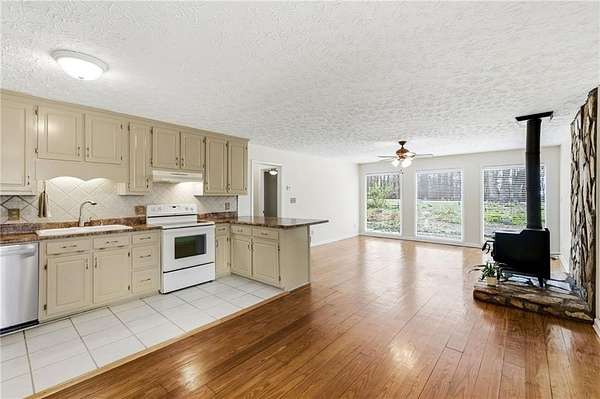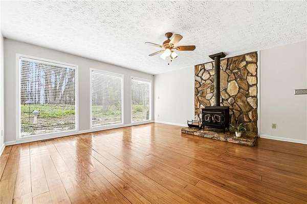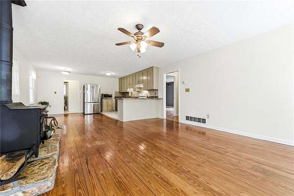 Est $2,120/mo7.7 acres in North Paulding with adorable ranch home with the ability to potentially build 1-2 more homes on property. Home has been well cared for with only one owner. Open floor plan with nicely painted kitchen cabinets and eat in dining area that is open to the family room with wood burning stove and rock surround. Two generously sized bedrooms with ensuite baths. One bath has walk-in tub/shower combo. Large laundry room plus sunroom off back of the home that is a perfect place to relax and enjoy the peace and quiet of the nature that surrounds you. Beautiful plantings and gardening area to enjoy.