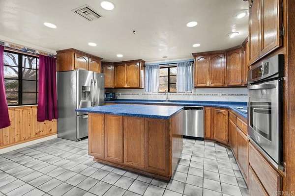 Welcome to this spacious 4 bedroom, 3 bathroom Alpine home offering privacy, scenic mountain views, and room to create your dream country lifestyle. Situated on usable land with room for animals, horses, or hobby farming, this property offers endless possibilities for those seeking space and flexibility. Inside, the home features a functional layout with generous living areas, a cozy wood burning fireplace, and large windows that bring in natural light and showcase the surrounding views. The kitchen offers abundant cabinetry, a center island, and plenty of space for cooking and gathering. Sliding doors lead to an outdoor deck where you can relax and take in the beautiful Alpine landscape. The property includes a detached 2 car garage, ample parking, and open space ideal for recreational vehicles, trailers, or agricultural use. Paid solar adds energy efficiency and long term savings. This home offers a fantastic opportunity for buyers looking to add their personal touch, with plenty of potential to update and customize while enjoying the peaceful rural setting. Located in a peaceful Alpine setting, this property offers privacy, space, and the opportunity to enjoy true country living with beautiful natural surroundings.