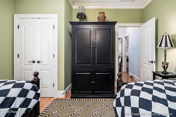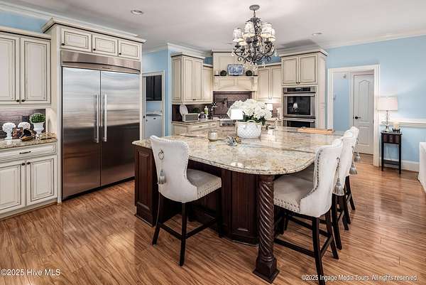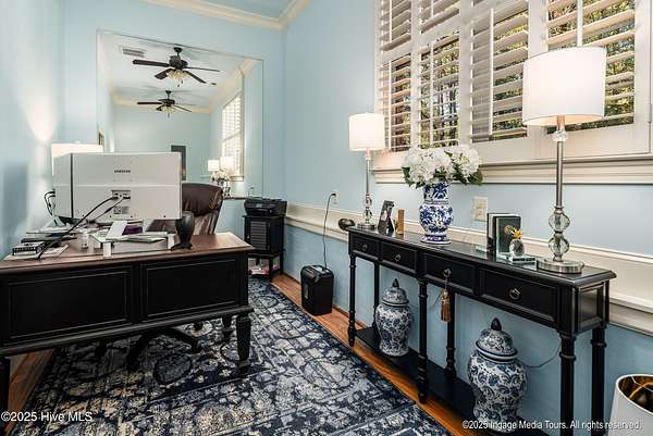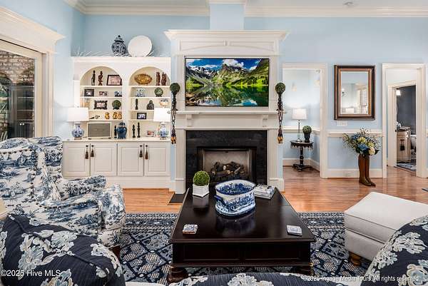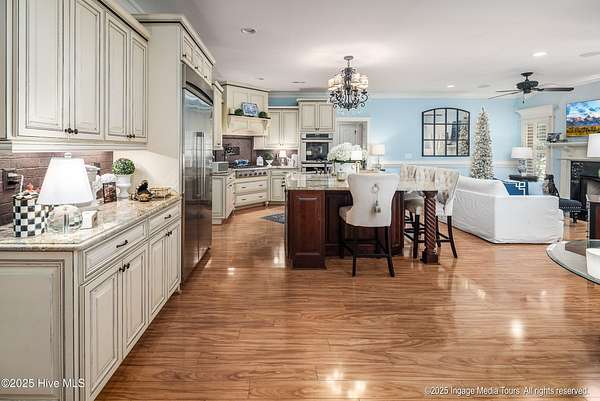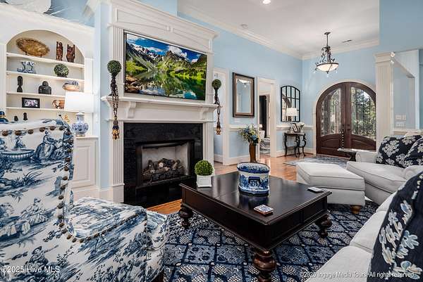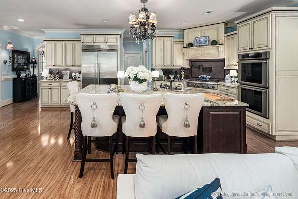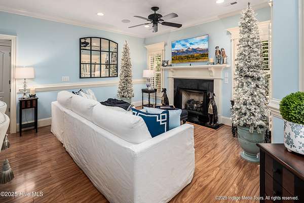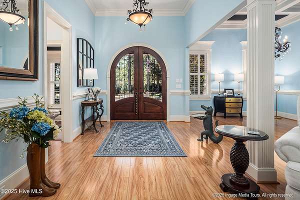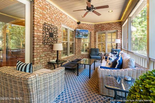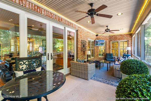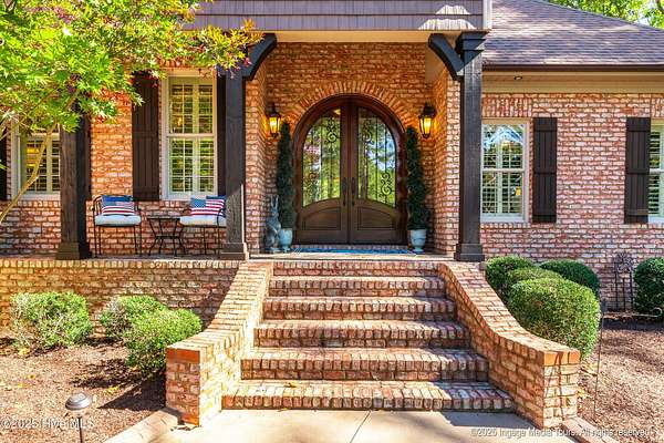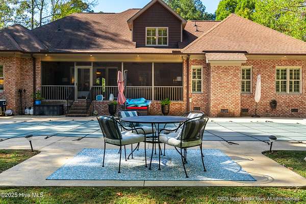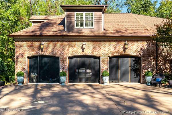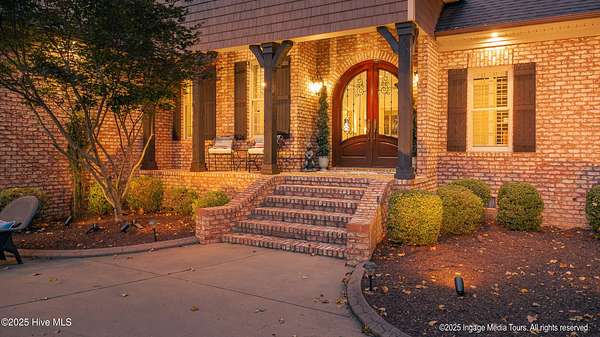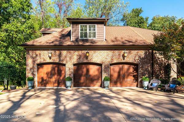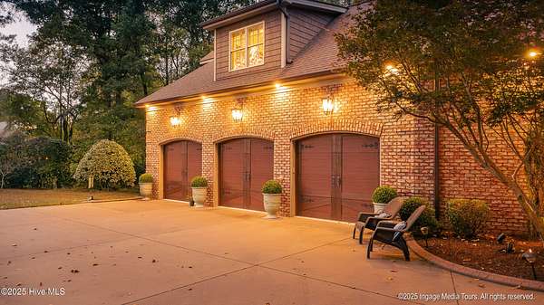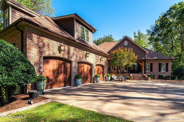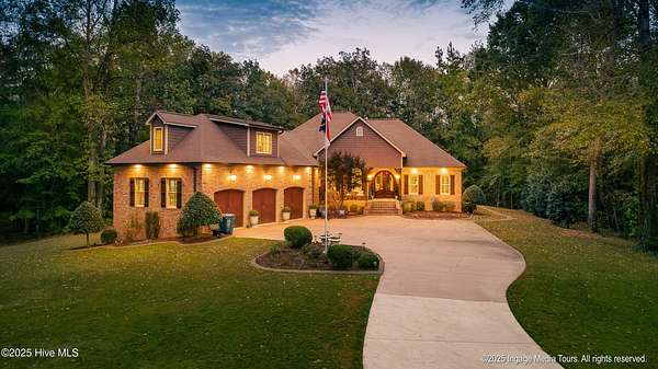 Custom-Built Estate on Private Acreage - Crafted by Ashley Elks. Tucked away at the end of a long, winding driveway, this stunning brick estate opens to a private clearing surrounded by mature trees & tranquility. Parade of Homes winner, this home exemplifies craftsmanship, quality, & thoughtful design at every turn. A gracious front porch welcomes you inside to a wide foyer with arched doorways, tall ceilings, & gleaming hardwood floors. The formal dining room features a coffered ceiling, while the den & keeping room each offer their own fireplaces & custom built-ins-perfect for cozy evenings or entertaining guests. At the heart of the home, the gourmet kitchen is a showstopper, boasting Thermador commercial-grade appliances, a six-burner gas cooktop with pot filler, double wall ovens, granite countertops, a walk-in pantry, & an oversized island that anchors the space beautifully. A sunny breakfast nook overlooks the backyard oasis. The primary suite feels like a luxury retreat with ample space for a sitting area, hardwood floors, & a spa-like bath with jetted tub, large walk-in shower, dual vanities, & a massive walk-in closet. 2 additional bedrooms & a second full bath complete the first floor, along with a laundry room and extra storage. Upstairs you'll find a spacious bonus room, a private guest suite with its own full bath, an office, & easy access to walk-in attic storage. Step outside to your private paradise-a screened back porch, saltwater pool, & expansive multi-acre property offering both privacy and open space. The three-car garage features retractable screens, making it ideal for hosting oyster roasts or outdoor gatherings, & even includes a heated & cooled office space. There's also a detached garage/workshop for your hobbies or equipment. Additional highlights include plantation shutters throughout, geothermal HVAC, underground fencing. Properties like this are a rare find-a perfect blend of luxury, comfort, and privacy just minutes from town.