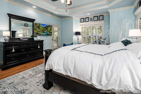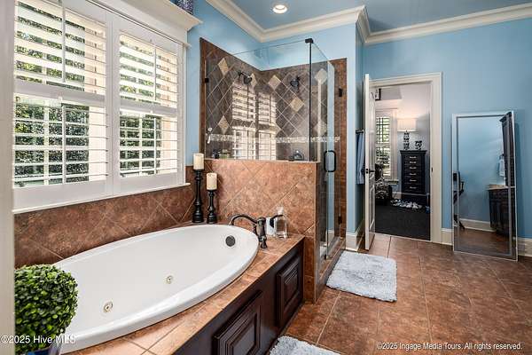 - Blinds/Shades, Bookcases, Ceiling Fan(s), Entrance Foyer, Gas Log, High Ceilings, Kitchen Island, Master Downstairs, Mud Room, Pantry, Solid Surface, Sound System, Tray Ceiling(s), Walk-In Closet(s), Walk-In Shower