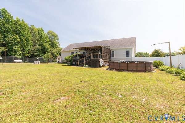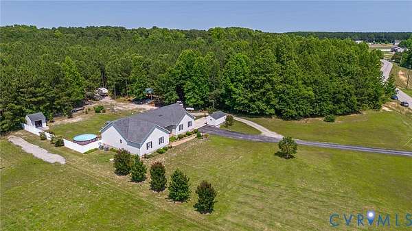 NEED MORE ROOM to spread out & call your own? 7.66 ACRES, mostly wooded, this property features so much more w/no HOA! Huge flat front yard, paved driveway from a quiet country road leads to lots of outdoor features that make this property special. Lg. detached storage shed w/ double doors (Apx. 10'x12'), Pole Barn (Apx. 24'x20') for equipment storage - very tall w/a metal roof! Have a Camper or RV? Already has the spot for it w/ 50 Amp service! Whole house generator kicks on automatically will keep you comfortable during a power outage. Large area of the rear yard is fenced-in, great for pets. 17' diam. above-ground pool conveys. Large (Apx. 24'x15.5') Deck is covered by a metal roof allowing you to sit outside, stay dry and enjoy listening to a steady rain. Aggregate sidewalk to the front porch (also masonry/aggregate) so you avoid maintaining a wood porch. Enter the front door to a welcoming tiled foyer & formal dining room w/ wide hardwood flooring, chair rail and crown moulding. Updated, modern lighting throughout the home. Family room has plenty of room for a sectional couch, updated extra large ceiling fan, gas log fireplace, LVP flooring and the door to the deck; also open to the kitchen. The kitchen has had many updates within the last 3 years - Quartz countertops, ceramic glass backsplash, LVP flooring, Whirlpool stainless steel appliances. Huge eat-in section of the kitchen with a bay window, corner pantry and still room to have a home office in this area! Utility Room/Laundry is past the kitchen and leads to the side-load garage (Apx. 24'x23') with a VERY high ceiling - lots of potential storage up there! At the opposite end of the house you will find 4 carpeted bedrooms - a large primary en suite w/ dual vanity, walk-in closet and a tub w/ ceramic tile walls. The house rounds out with 3 more bedrooms and a hall bathroom with a tub/shower. 20 min. to Ft. Gregg-Adams Exit on 295. Schedule your showing soon so you can see this beauty in person! Although no known defects, seller prefers to sell "as is".