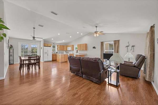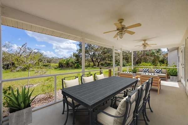 This property is truly a sanctuary, ideal for anyone seeking a peaceful lifestyle without sacrificing convenience, as it's located within easy reach of nearby amenities and major routes. Outisde, enjoy the natural beauty of Florida while "birding" from your screened, back lanai. With every detail carefully curated and maintained, this charming home on private acreage offers a unique opportunity to embrace both charm and the great outdoors. There is a 50' foot easement along the south boundary line for the neighbor to access their property.