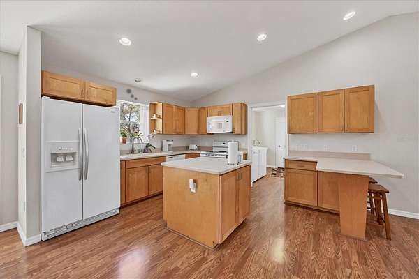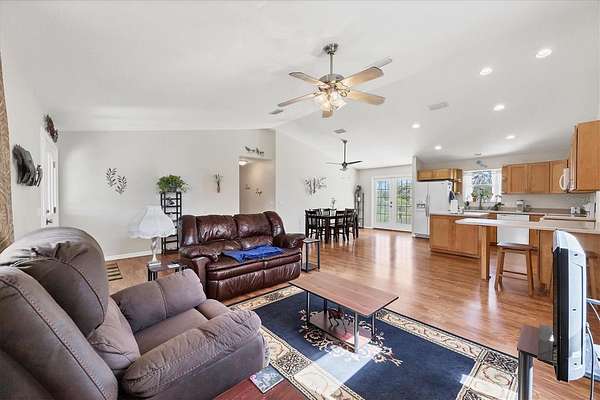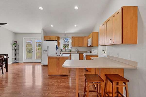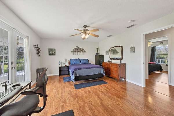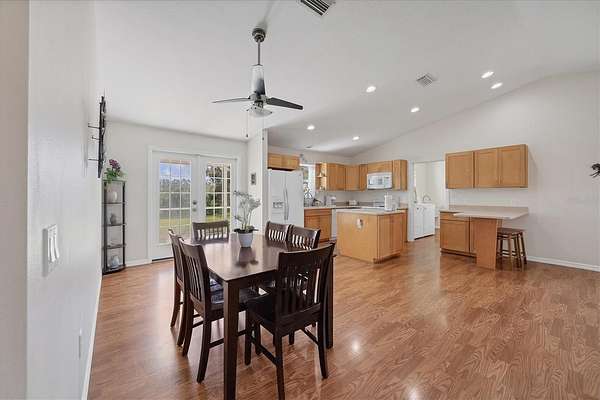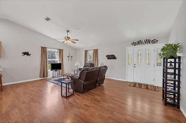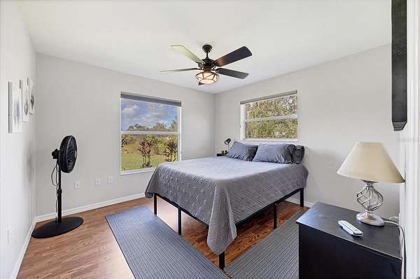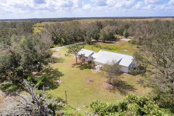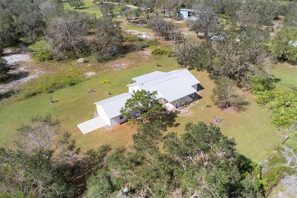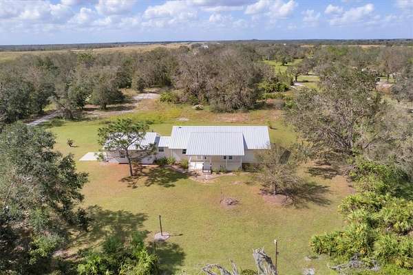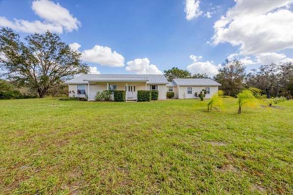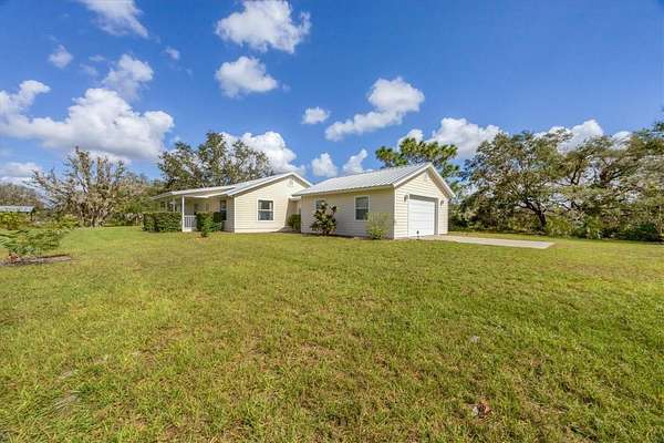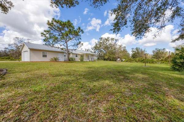 Under contract-accepting backup offers. One or more photo(s) has been virtually staged. This thoughtfully maintained and move-in ready home is back on the market. This lovely home offers you the opportunity for the rural and country lifestyle. Make this your mini-ranch or use the acreage to grow your own foods. Don't miss your second chance to own this lovely home on 5 acres in Myakka that invites you to experience the perfect blend of country charm and privacy. From the pristine Hardi-plank exterior adorned with a metal roof, to the natural light of the interior, this 1,662 sq ft home is move in ready. The open kitchen adjoined with the cozy dining area and breakfast bar is the center of the home and leads out to a screened- in back porch where you can enjoy the view and relax. Flooring is wood laminate throughout with ceramic tile in the both bathrooms. This 3 bedroom, 2 bath home sits in the rear of the property and cannot be seen from the main road which allows for privacy. Natural Florida trees and plants as well as a small pond, cover the majority of the property. Extremely clean, attached one car garage with pull down attic access that offers more storage compacity. Property is zoned ag residential so build your barn or other outdoor buildings. Horses, cattle, other farm animals and pets are allowed. No HOA or deed restrictions. Step inside to find warm, inviting interiors bathed in natural light, featuring classic design elements that blend seamlessly with thoughtful modern updates. The spacious living area flows effortlessly into a cozy dining space, perfect for intimate gatherings or entertaining friends and family. The kitchen boasts ample counter space, custom cabinetry, and quality appliances, making it as functional as it is beautiful. Each bedroom offers a serene view, with large windows that frame stunning views of the surrounding landscape, ensuring a sense of calm and privacy. Outside, the expansive acreage is a paradise for nature lovers, complete with pathways that wind through wooded areas. There's also plenty of space to add a garden, create outdoor living areas, or simply enjoy the quiet beauty of the natural surroundings. There is a small pond at the front of the property.