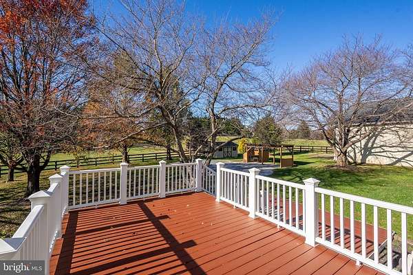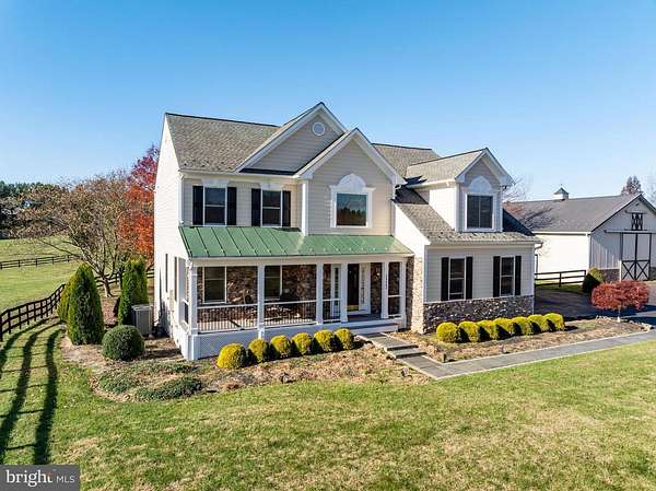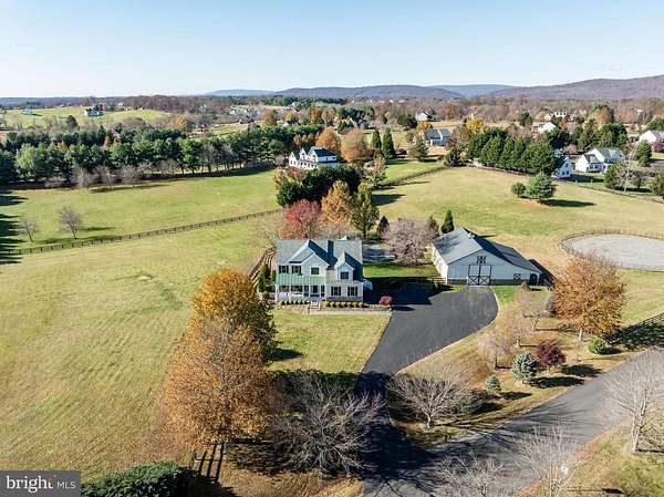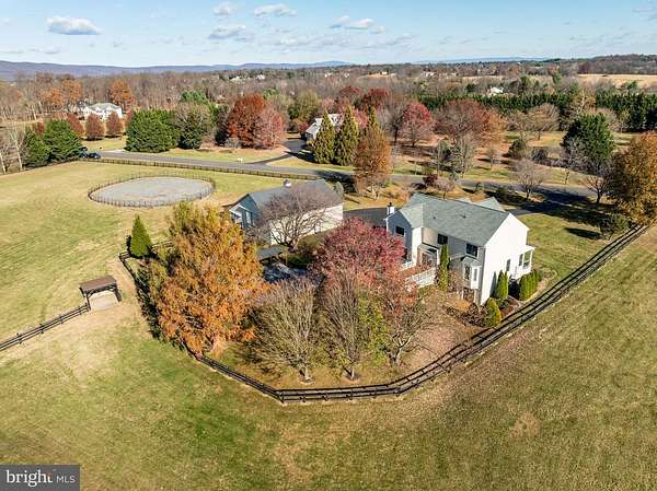 Immaculate updated home with gorgeous pool and large outbuilding on 5.5 acres in Purcellville, VA with NO HOA, Fiber optic internet, located in sought after Wheatland Estates just minutes to town off all paved roads. Entertain all summer off the 2 tier deck. Relax under the pergola overlooking the pool. This home has been meticulously maintained with roughly 4000sq ft on 3 levels. 4 bedroom and 3.5 baths and a 2 car attached garage plus a detached 4 car garage/ barn. On the inside you will find an open floor plan with solid hardwood flooring on the whole main floor and second floor. The newly remodeled kitchen has new soft close wood cabinets, Quartzite countertops, and under cabinet lighting. The kitchen opens the the family room with wood burning marble surround fireplace and large new Andersen picture windows with tree views in every direction. A large dining room with extra tall bay window and spacious living room/ office area. Laundry mud room on main level. Upstairs the incredible primary suite has four walk in closets and a large spa bath walk in shower, large soaking tub,2 new vanities and updated lighting. The lower level has a spacious recreation room, a large theatre / bonus room and a full bath- perfect for guests. Plus it has a walk out to a private lower level patio. Outside the home is virtually maintenance free with freshly painted Hardi-plank cement siding, stone accents and all Azek PVC trim. Lush landscaping features four varieties of cherry trees, Crepe Myrtles, and Mimosa trees, Ample outdoor living with the front porch. The expansive driveway is freshly sealed and paved to allow a larger trailer turning radius. The 48' x 48' metal barn with yellow pine framing has 2 finished stalls and a fully finished tack room / workshop and an office. The barn has a large loft or storage space above. There are 2 horse stalls ( 12 x 16) and (12 x 12) that open to a shed row and the weather riding ring. The stalls can be removed for even more space in the huge 48 x 48 barn. This property is horse or large animal ready so bring your animals:) The yard is completely fenced yard with 3 board fencing with a run in shed and storage shed. The Multi-use barn will hold a Class A RV, tractors, cars, or a boat and has power and water. The roof was replaced with Timberline shingled roofing in 2020. New Anderson Windows for the entire home were added in 2024. The efficient heat pump systems have been updated and maintained by MEFLOW. Privacy and serenity with views from every window. Your dream property awaits. Come enjoy the country life in Purcellville, VA. Wineries, Breweries and Farm to fork dining nearby. Easy access to DC- it is just 6 miles to the Marc train, nearby Coop Grocers in Lovettsville and minutes to the town of Purcellville, Dine out at Market Table Bistro, 1836, Rodeo Mexican or Daughter Thai just minutes away. Only 30 minutes to Dulles Intl . Airport