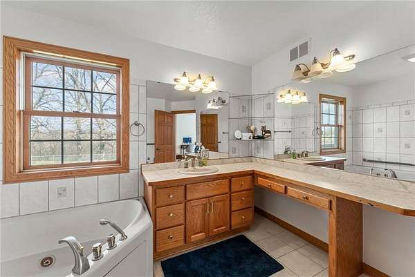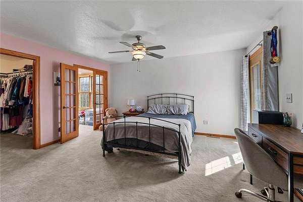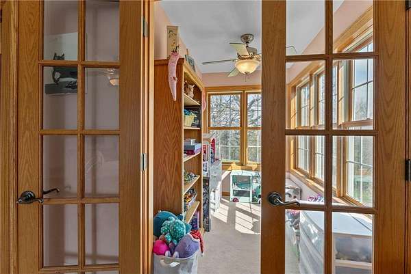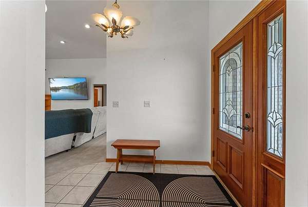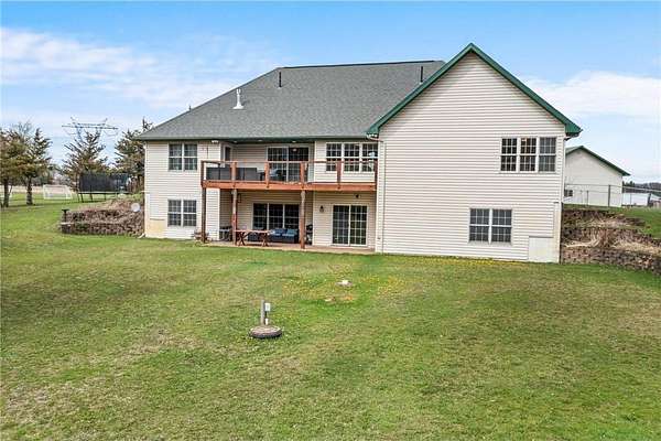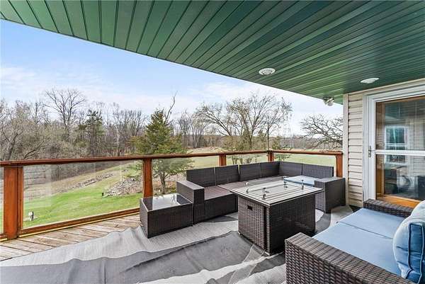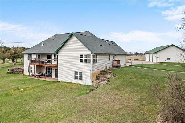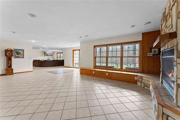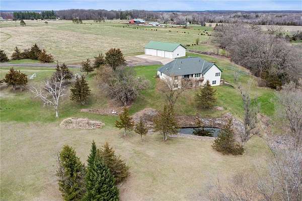 Discover over 5,000+ sq ft of luxury country living on nearly 16 private acres overlooking the Sunrise River. This custom-built home features 5 bedrooms and 4 baths, including two main-level primary suites, one with a sunroom and private deck access. Designed for comfort and style, the home showcases vaulted ceilings, in-floor heat on ALL tiled surfaces and an open-concept layout with an expansive wet bar-perfect for entertaining.