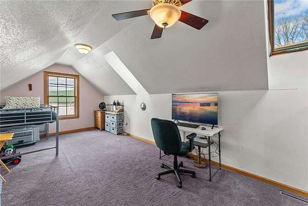 Outdoor amenities include panoramic views from the low-maintenance deck with fiberglass railings, solid brick exterior, an in-ground sprinkler system, and fenced pet area. Car enthusiasts or hobbyists will love the 70x40 heated garage with in-floor heat, RV parking, and three 12’ doors. Ample space for gardens and hobby farm ideas.