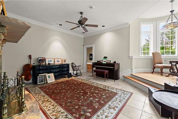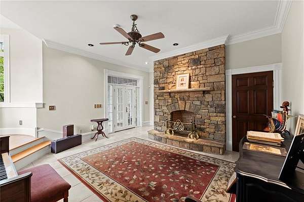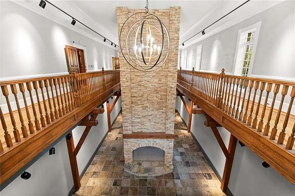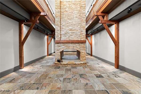 Two lower levels overlook a show-stopping, two-story Recreation and Gaming Hall featuring a massive 30-foot stone fireplace--perfectly suited for entertaining, art displays, or hosting grand events. The home is elevator-ready, with a shaft already in place, and includes existing plumbing for a future pool featuring cascading waterfalls from the main house.