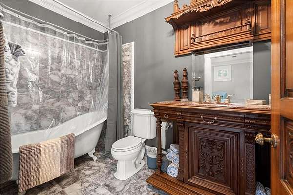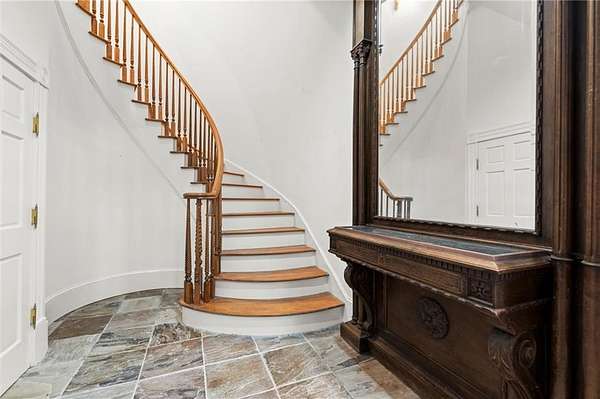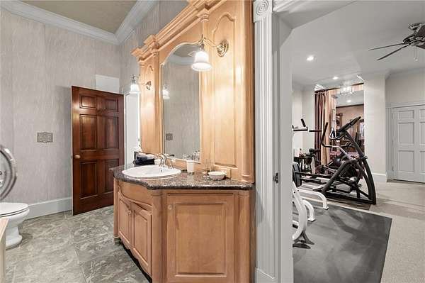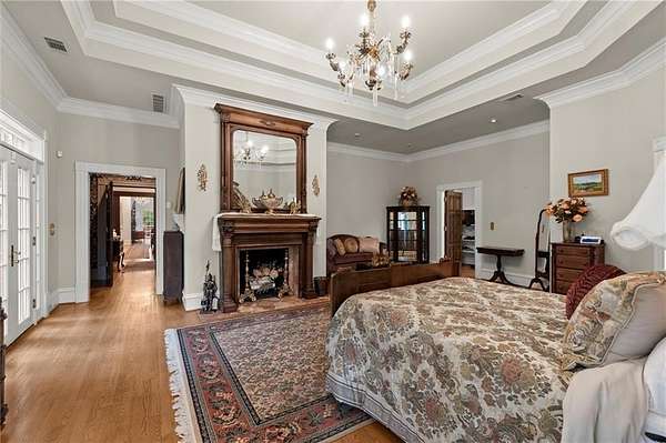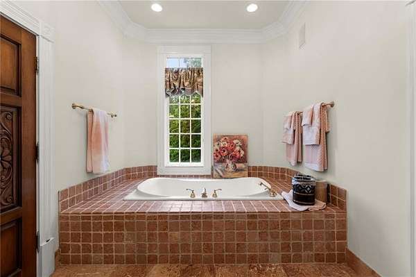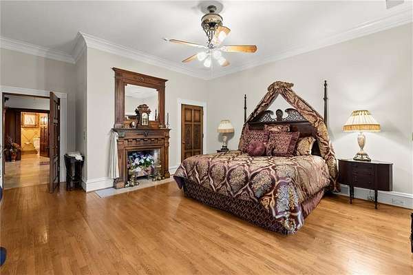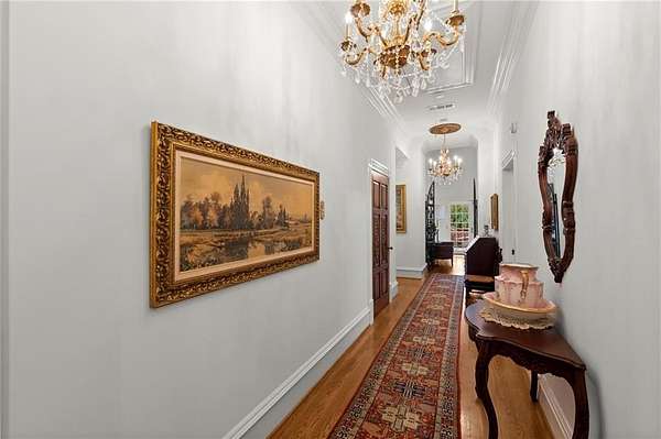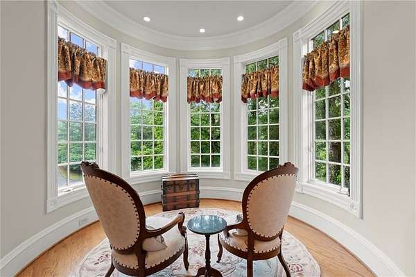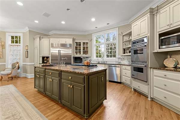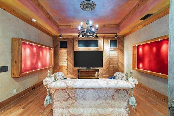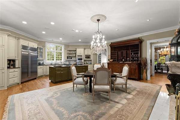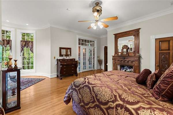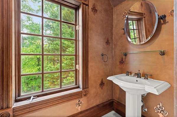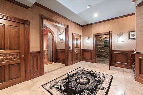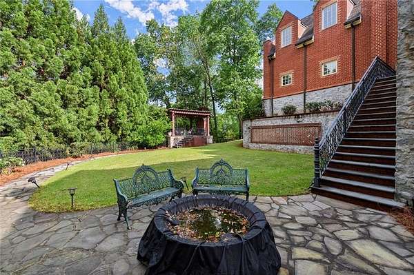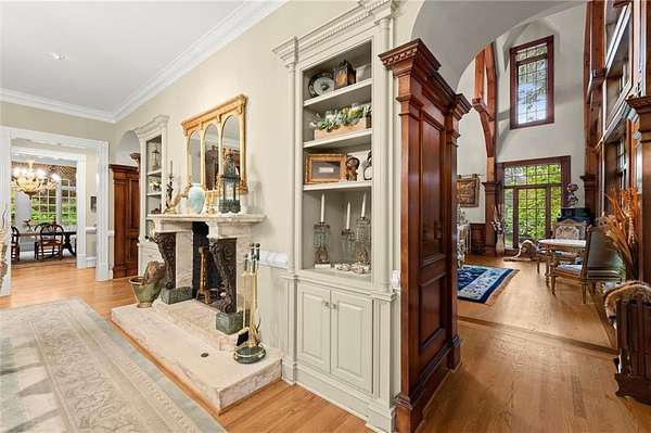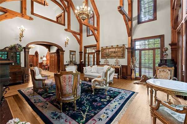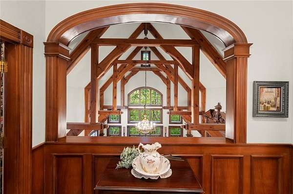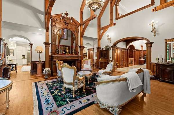 "The LION Manor"- Majestic Estate Inspired by the Castles of England and Scotland - Sale Includes Adjoining Lot - two parcels! Bordering the National Park and nestled beside scenic Sope Creek, this breathtaking estate draws inspiration from the timeless castles of England and Scotland. Meticulously crafted over three years, this architectural masterpiece combines old-world grandeur with modern luxury and includes the adjoining lots for added privacy and expansion potential. From the moment you enter, you're surrounded by masterful details: rare Honduran mahogany, hand-carved doors, antique imported mantels from 200-300-year-old English manors, and European chandeliers throughout. A soaring 25-foot Great Room with hand-hewn beams offers a dramatic central gathering space, while the richly paneled Library/Office and elegant Dining Room with fabric-paneled walls exude character and sophistication. The gourmet Kitchen features a large island, walk-in Pantry, Butler's Pantry, and a cozy Keeping Room with fireplace, all opening into a Breakfast Room with tranquil views of the natural beauty of Sope Creek. A main-level Suite with fireplace provides comfort and privacy for owners or visitors. The grand two-story Entry Foyer features a sweeping mahogany staircase, complemented by a rear staircase accessing all levels. Upstairs, the expansive Second Primary Suite includes its own fireplace and private Laundry, along with two additional ensuite Bedrooms. A private hallway leads to the Carriage House, offering independent living space complete with Living Room, Kitchen, Bedroom, Bathroom, and Laundry. Two lower levels overlook a show-stopping, two-story Recreation and Gaming Hall featuring a massive 30-foot stone fireplace-perfectly suited for entertaining, art displays, or hosting grand events. The home is elevator-ready, with a shaft already in place, and includes existing plumbing for a future pool featuring cascading waterfalls from the main house. Car enthusiasts and collectors will appreciate the oversized five-car Garage, with two climate-controlled bays and generous storage. The Carriage House is accessible via an interior staircase for convenience. This one-of-a-kind estate was constructed with only the finest materials and an uncompromising attention to detail. It's more than a home-it's a legacy property, ready for you to make your own. Note: Bedroom/Bathroom count includes 1BR/1BA in the Carriage House Apartment. Pool design plans available.
