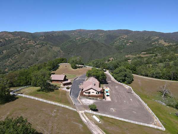 Imagine 8,811 acres of coastal range land, custom 4-bedroom home, additional 1 bedroom home, barn, horse pens, creek and fully functional cattle operation, with the highest peak on the Santa Lucia Mt. Range, overlooking the Salinas Valley, Carmel Valley and on a clear day, Santa Cruz, Carmel by the Sea and the ocean! As you enter the ranch, it feels as if you've stepped back in time, beautiful ancient oaks canopy the drive giving you a sense of peace and tranquility. The ranch headquarters are the first buildings you come to, including a large hay barn with storage room and full bath. Comfortable 1 bedroom ranch house, covered horse paddocks and several fenced pasture areas. Cattle corrals with piped fencing include chute, squeeze and scales. Nicely set up for working cows. Continue up a paved drive to the stunning main ranch house, situated on a hillside with amazing views. The custom 3000 sf home features 4 bedrooms and 2 baths. Open plan with large living room as well as family room. Beautiful river rock hearth, open kitchen and dining with wonderful natural lighting. Large 2 car garage and shop area, home is set up with a backup generator system. The Palo Escrito Peak is 4,600 ft in elevation. At this point, you are ''on top of the world'' with views in every direction, it's simply breathtaking.