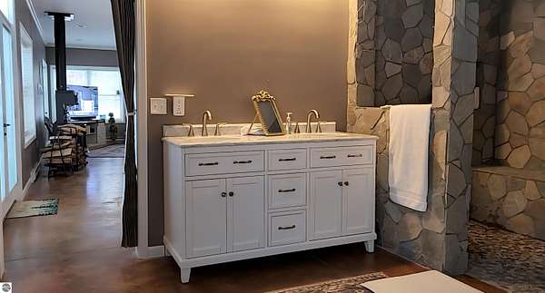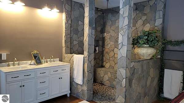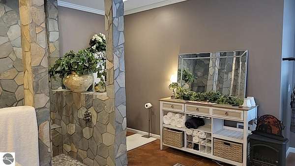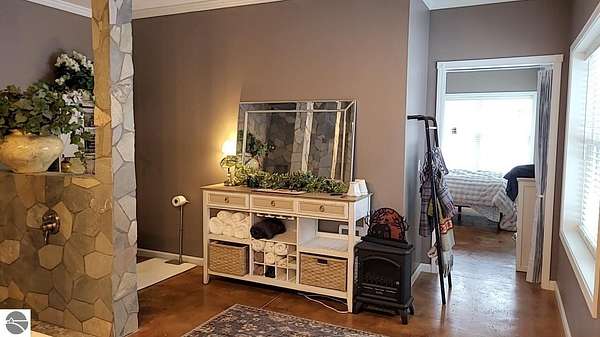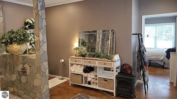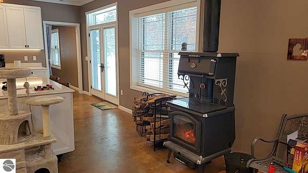 Opportunities like this are exceptionally rare--26 private acres with an extraordinary 1,289 feet of frontage on the East Branch of Blue-Ribbon AuSable River in Grayling. Large acreage along with expansive river frontage and unmatched privacy. This property truly has it all. Built in 2024, the barndominium offers nearly 4,100 square feet under roof, including 1,024 square feet of beautifully finished, premium living space. The remaining 3,120 square feet provides heated, finished storage with four overhead doors--ideal for vehicles, boats, recreational toys, or workshop space. Two doors are large enough to fit a large 5th wheel, a motorhome, or even both. There is plenty of room for all your toys. ucked away on the property is a recently remodeled 540-square-foot cabin complete with its own original garage and outhouse. There is a new wood shed, chicken coop, and workshop also by the cabin. Perfect as a guest retreat, hunting lodge, or potential rental, the cabin adds both charm and versatility. The land itself is equally impressive. Professionally installed underground irrigation supports a maintained food plot, and two deer blinds and one tree stand are already in place for the outdoor enthusiast. Multiple improved trails wind through the property and lead down to the river, where trout fishing is known to be exceptional. Bear, beaver, mink, deer, coyote, fox, badgers, bobcats, raccoons, porcupines, squirrels, and chipmunks abound. A gated driveway welcomes you in and sets the tone for the privacy and serenity that define this rare and remarkable waterfront property.