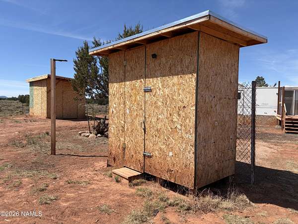 Est $332/mo20' X 20' GARAGE * NEWLY UPGRADED 28' RV THAT SLEEPS 6 W/SEPTIC SYSTEM & MASSIVE DECK (10'X17'), RV IS RAISED & SKIRTED * GATED ENTRY * NEW FRIDGE, TOILET, BLINDS & CARPET * 3 CUSTOM BUILT SHEDS **(10'X22'), (10.5 X 14.5'),(6.5' X 8') * CHICKEN COOP * SOLAR * 275 GALLON WATER TANK * RV PARKING * 2 EXTRA RV DUMP STATIONS W/ SEP SEPTIC TANK * FULLY FENCED YARD W/ CONCRETED BOTTOM SO DOGS CANNOT DIG OUT * ENTIRE PROPERTY FENCED WITH BARB * LOADS OF CINDERED PARKING