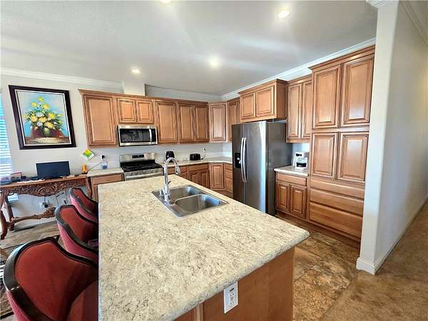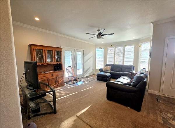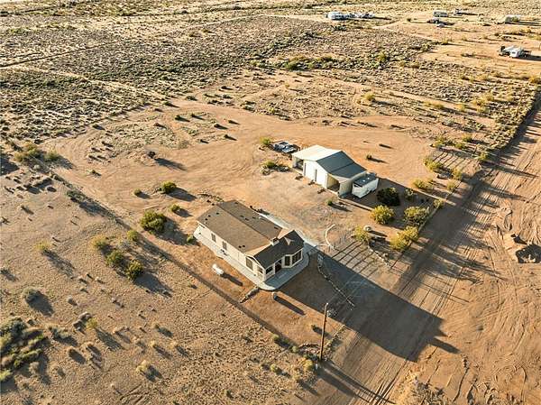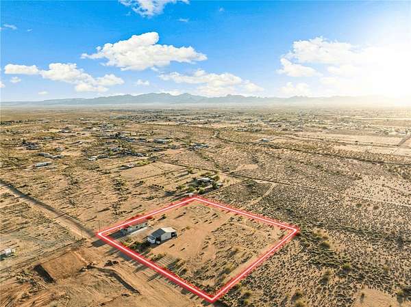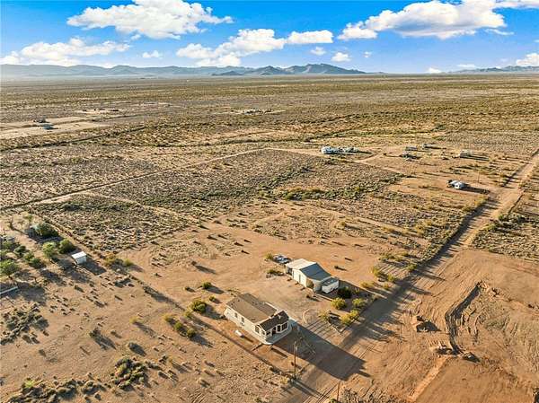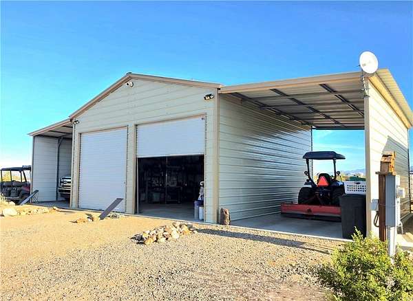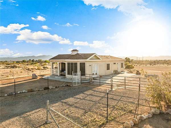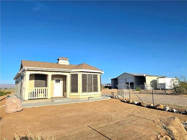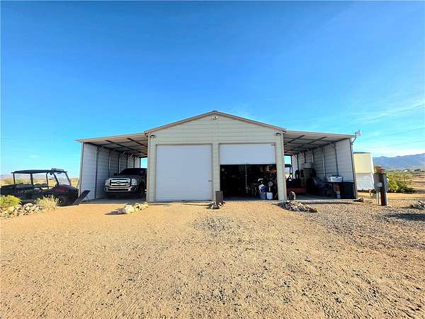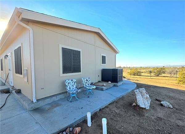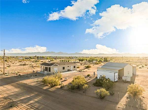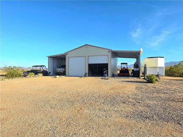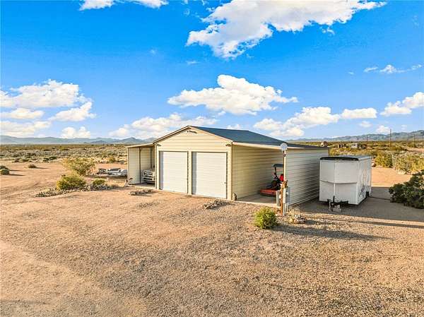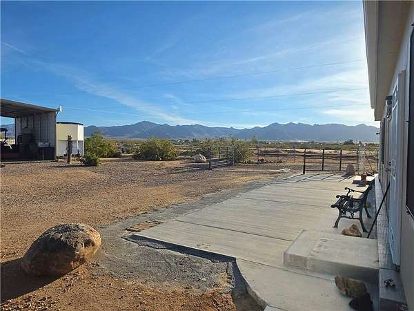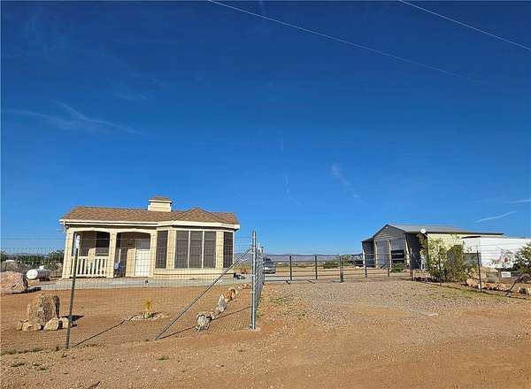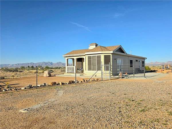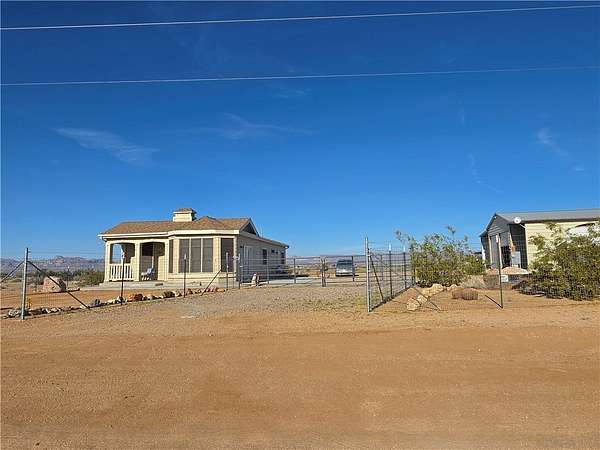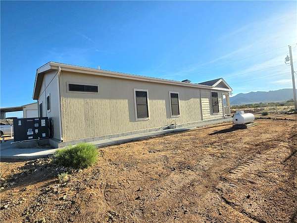 Near-new, ground-set home on fully fenced 2.35 acres offering space, functionality, and quality construction throughout. This 3 bedroom, 2 bathroom home features 1,554 sq ft with 9-foot ceilings, 2x6 framing, and full tie-down system for added stability.The upgraded kitchen includes modern cabinetry, an oversized island and opens to a comfortable living space with an abundance of natural light, perfect for everyday living. Interior highlights include an indoor laundry room with both gas and electric hookups, additional storage, and space-saving pocket doors in the primary bathroom and laundry area. All windows are equipped with blinds and sun screens for energy efficiency and privacy.Exterior features are ideal for rural living, with full perimeter fencing, two drive gates, and two walk-through gates. Enjoy the durable Trex front deck and concrete surrounding the home. Utilities include rural water service, owned propane tank, and a 200-amp electrical panel.The property is well-equipped with a 24x25 detached garage featuring 10-foot doors and a 150-amp subpanel, plus two 12x24 carport/lean-tos for additional covered parking. RV hookups with 30-amp service add extra convenience.This property offers a great combination of modern comfort, usable acreage, and versatile outbuildings ready for its next owner.Located in a desirable area for outdoor enthusiasts with easy access to miles of surrounding BLM land, such as the Arizona Peach Trail, Badger Trail and Castle Rock, offering endless opportunities for off-road riding, UTV use, hiking, and biking. Convenient access to regional trail systems and nearby mountain recreation adds to the appeal of this versatile property.