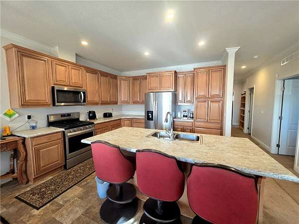 - Breakfast Bar, Ceiling Fans, Dining Area, Kitchen Island, Laminate Counters, Laminate Countertop, Open Floorplan, Pantry, Primary Suite, Separate Shower, Shower Only, Utility Room, Walk In Closets, Window Treatments