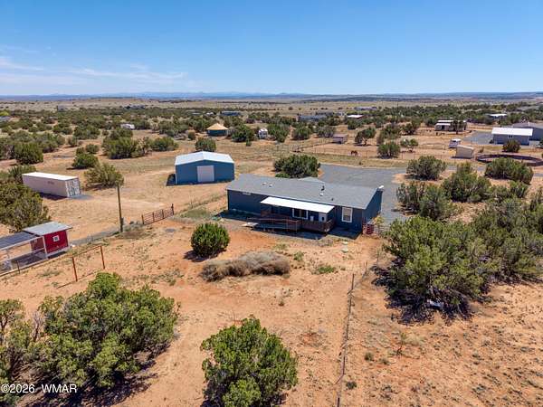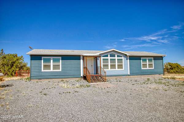 Located on 4.99 acres in the peaceful countryside of Snowflake, this beautiful 2022-built double-wide manufactured home offers the perfect blend of modern comfort and wide-open spaces. Featuring 1600 SQFT, this well-designed home includes 3 spacious bedrooms and 2 full bathrooms, ideal for families or those seeking extra room to spread out. Step outside and take advantage of 4.99 acres of usable land- perfect for horses, equipment, or outdoor recreation. A standout feature of the property is the large metal building with roll-up doors on both ends, offering excellent access and versatility for storage, a workshop or hobby space. Don't miss this opportunity to own a newer home with acreage in Northern Arizona.