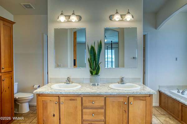 - Breakfast Bar, Double Vanity, Eat-In Kitchen, Full Bath, Kitchen/Dining Room Combo, Master Downstairs, Shower, Soaking Tub, Split Bedroom, Tub/Shower, Vaulted Ceiling(s)