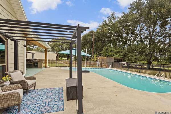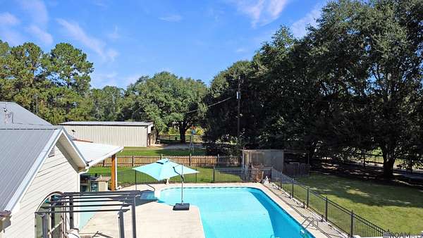 High and Dry - no flooding here! Looking for acreage with income potential or room for a family compound? This 21-acre property offers two residences, a stocked 5-acre pond with pier and gazebo, and multiple fenced areas. The updated main home offers approximately 3,841 living area on 12.5 acres with 3BR/2BA plus a 2BR/1BA MIL apartment under the same roof (that has its own full kitchen/dining/living room, as well as its own front and back porches & fenced yard area.) Some of the features in the main home include a whole-home generator, all new windows with a lifetime warranty, 5 separate fenced pastures with water piped to each, a 30x50 metal barn with 4 horse stalls, a large 36x36 insulated metal shop with air conditioning, self-watering chicken coop, and a rustic wood cabin overlooking the pond. Mature trees, landscaping, and a variety of fruit trees including pear, fig, persimmon, blueberry, peach, blackberry, and apple. The second residence is a 2019 3BR/2BA single-wide mobile home on 8.5 fenced acres with shared pond access and Hwy 955 frontage. Some of the main home updates include a new family room (2010), pool (2013), kitchen remodel, new metal roof & MIL addition (2018), outdoor kitchen (2023), and new windows (2024), to name a few! Located in the Slaughter Community Charter School District, just 15 minutes from Zachary. A beautiful and versatile property--MUST SEE!