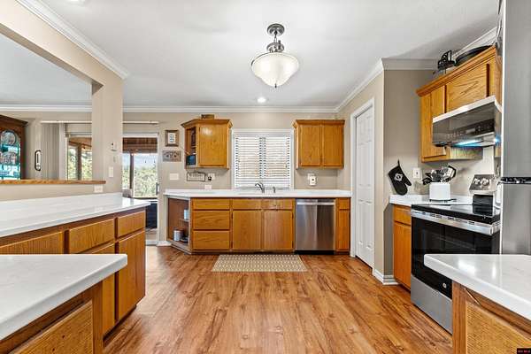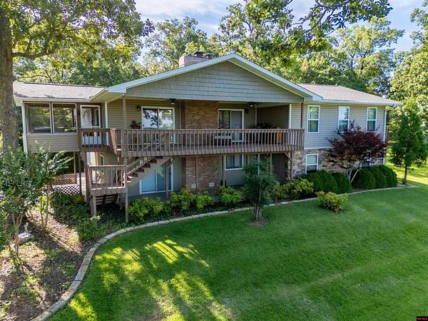 Welcome to 387 Blackjack Trail -- your Ozarks escape near Lake Norfork, just 4 miles from Buzzard Roost Marina. This 3 bedroom, 3 bath home sits on almost 2 acres m/l with lake views and the perfect blend of comfort, space, and outdoor living. The open-concept kitchen and living area features new countertops and appliances. North Star water softener installed, with two water heaters, two HVAC units, and a Vermont convection heater. The spacious 16.5' x 17' primary suite includes a walk-in shower and a separate office area. A walk-out basement offers room for guests, hobbies, or storage. Enjoy an oversized 3-car garage, workshop space, and parking for lake toys. Outdoor living includes both a screened-in and a covered deck with Ellington fans. Whether you're seeking a full-time residence or weekend getaway, this home checks all the boxes. Secluded yet only 3 miles from town, Walmart, and Lowe's--convenience meets tranquility in the heart of the Ozarks.