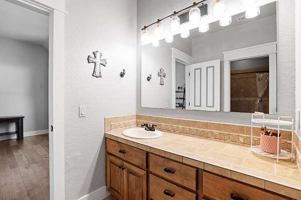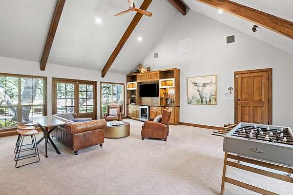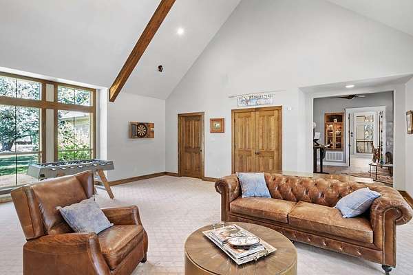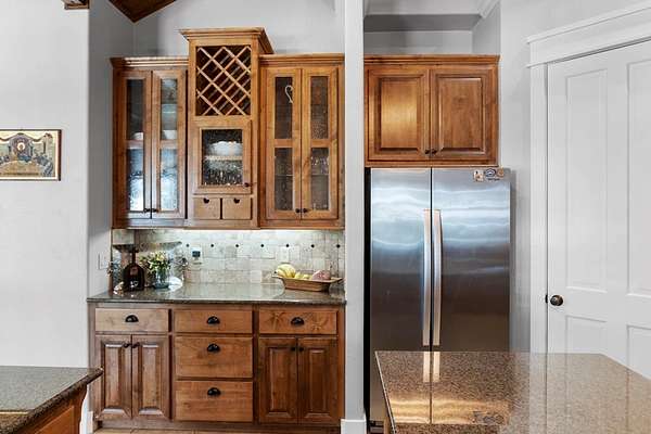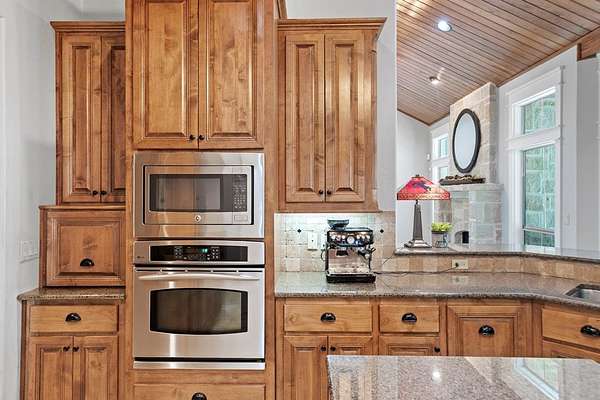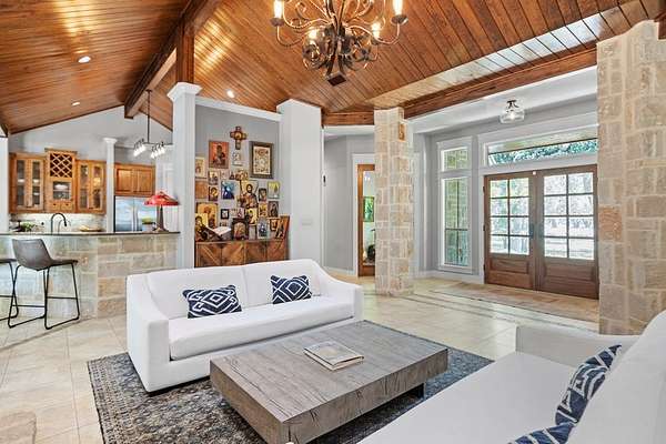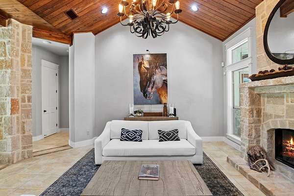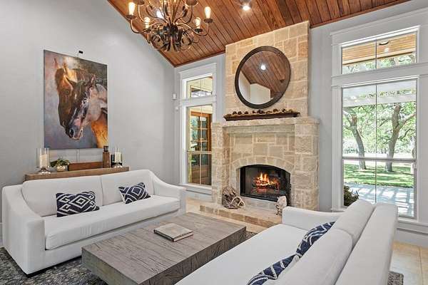 BROOKS CROSSING ESTATE - Offers the epitome of style, quality and craftsmanship wrapped up in a stunning custom-built home featuring 3 bedrooms and 2.5 baths, this 3,932+ square-foot masterpiece sits at the end of a quiet cul-de-sac on 15 horse friendly acres, surrounded by abundant majestic oak trees and beautiful landscaping, making for an ultimate private feel. Step inside and you're welcomed by exquisite beauty and a warm charming atmosphere at every turn. Beginning with soaring wood-beamed vaulted ceilings and rich wood accents that flow seamlessly from room to room, lending warmth and character throughout. The impressive entryway, flanked by grand stone pillars, leads you into a charming great room anchored by a floor-to-ceiling stone fireplace and expansive windows that bathe the space in natural light while showcasing breathtaking backyard views. The gourmet kitchen is a dream for entertaining, equipped with top-of-the-line appliances, a spacious island, deep sink, under-cabinet lighting, gleaming granite countertops, and an oversized walk-in pantry. Custom alder wood cabinetry provides ample storage, and the kitchen flows effortlessly into the dining area w/ built in serving station-an ideal spot to enjoy meals overlooking the majestic trees and acreage out back, with direct access to the back patio for seamless indoor-outdoor living. The spacious master suite encompasses an entire wing of the house and is a perfect blend of style and utility complete with a striking wood accent wall, intricate pan ceilings, beautiful views outside, and direct access to the outdoor living area. The spa-inspired ensuite bathroom features a Jacuzzi soaking tub, walk-in shower, huge roomy walk-in closet and his/her vanities uniquely designed with granite countertops and tons of hardwood custom cabinetry and storage. A well thought out split floor plan places the two additional guest rooms just down the hall. Both guest bedrooms are cozy and inviting, complete with tall vaulted ceilings, abundant natural light and generous walk-in closets, connected by a large Jack-n-Jill bath that offers separate rooms with their own vanities and a shared shower/tub. In addition, the home includes a spacious utility room with tons of storage and cabinetry, a large utility sink along with an office that can be easily converted to a 4th bedroom. But wait there is more! Off the kitchen, you'll find a cozy den with vaulted wood ceilings and a stylish powder bath, which opens into a huge family room--perfect for game nights, movies, or relaxing with friends and family. OUTSIDE - step outside to the expansive patio where you will spend a lot of your time sitting and enjoying the deer, birds and other wild life underneath a bed of oak trees. Multiple doors connect the patio to the living and kitchen areas, making this home perfect for entertaining. There's also a well-equipped well house with electricity, offering extra storage options along with an over-sized 3 car garage, giving extra space for off-road vehicles, motorcycles or storage. The landscaping includes automatic sprinkler system and lighting. Horses are welcome. A perfect spot for the equestrian lover! This property comes equipped with excellent horse facilities including 2 oversized horse stalls, a riding arena, and secure fencing and cross fencing. A 900 square-foot workshop with AC is ideal for woodworking, car enthusiast or any hobby you can imagine. Whether your passion is horses, livestock, or simply enjoying nature at its finest, this property has room for it all. Welcome to Brooks Crossing Estate--a rare blend of elegance, comfort, and country living.