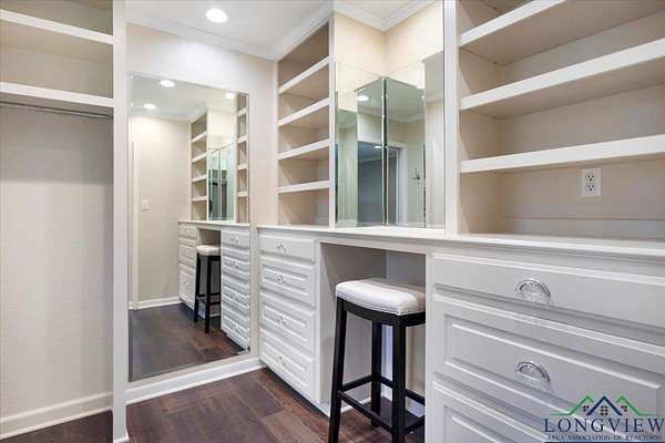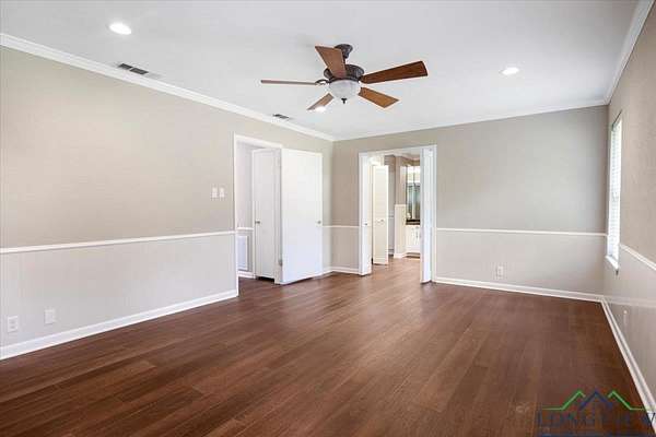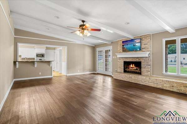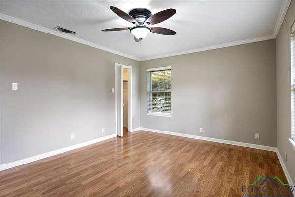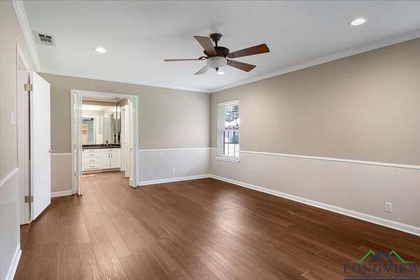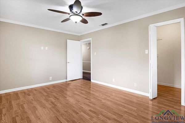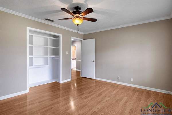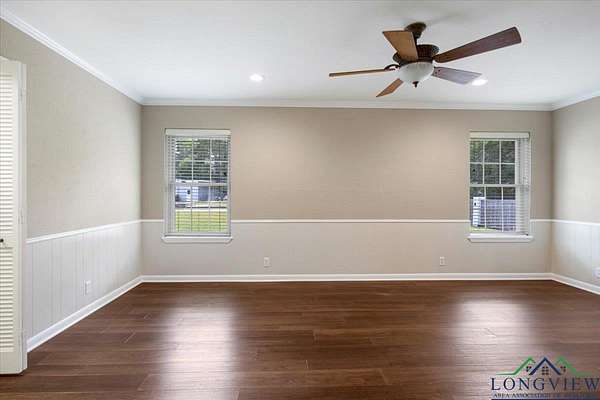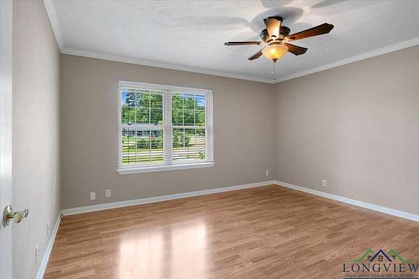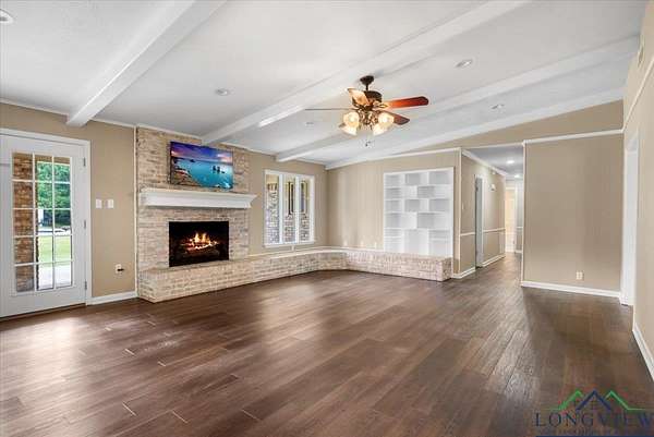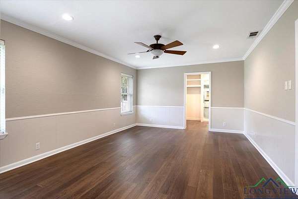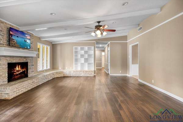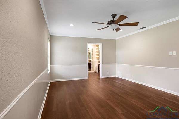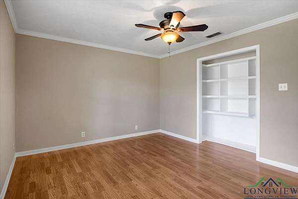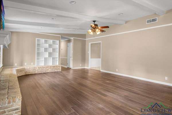 - Bookcases, Ceiling Fan, Laminate Flooring, Paneling