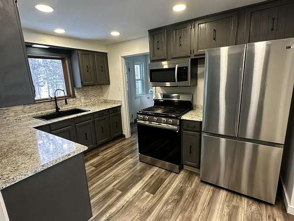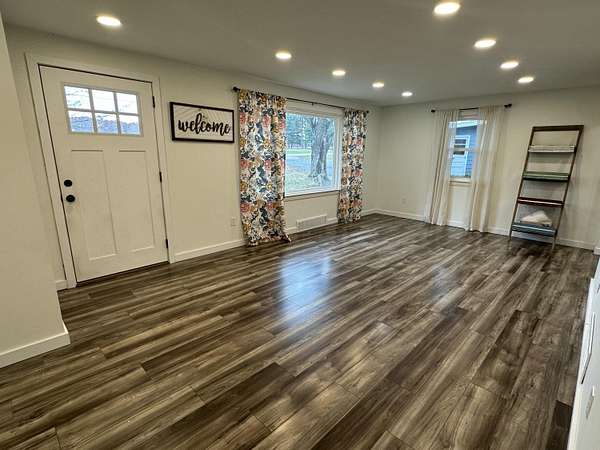 Discover this charming, recently updated Ranch-style home, perfectly blending comfort and natural beauty in a great location. This move-in ready property sits on a serene 1.9 +/- wooded acres, offering a peaceful retreat while being conveniently close to local amenities. The spacious interior features three comfortable bedrooms with ample closet space, a large living room, and a cozy family room complete with a wood-burning fireplace, ideal for relaxing evenings. The home boasts a fresh, modern feel with brand-new laminate flooring and carpet throughout, newer appliances, and fresh paint. The single full bathroom features a new bathtub insert added in 2024. Buyers can move in with peace of mind knowing all major updates have been taken care of, including a new roof on the house in 2023, replacement windows installed the same year, a new gas HVAC heating and air system in 2022, and a new water heater in 2022. The 28' x 22' garage with workshop & new roof in 2019. Welcome Home! List of major improvements. New Roof on House 2023 New roof on garage 2019 Replacement windows 2023 New Gas HVAC heating and air 2022 New Water heater 2022 New Bathtub insert 2024 New Laminate flooring Newer Appliances