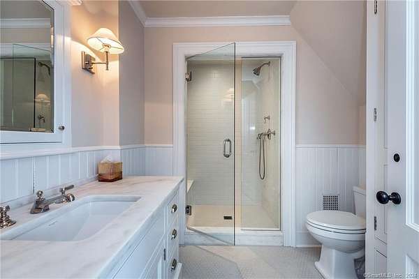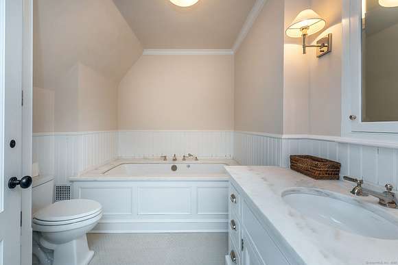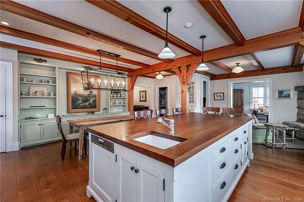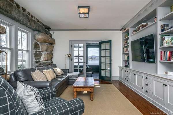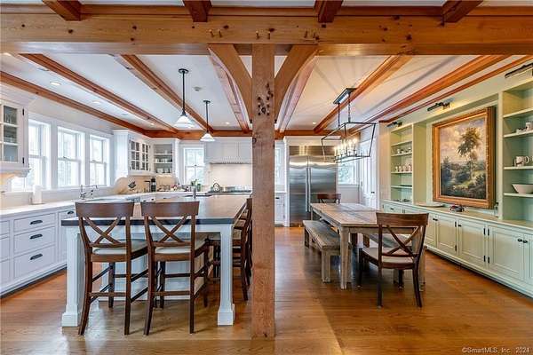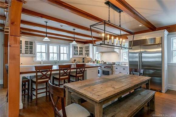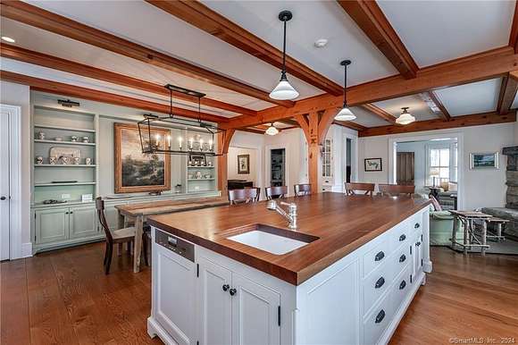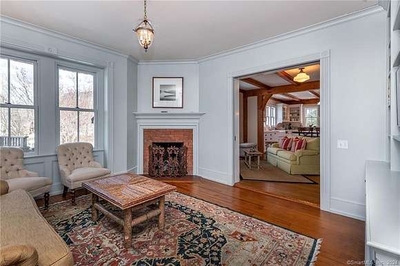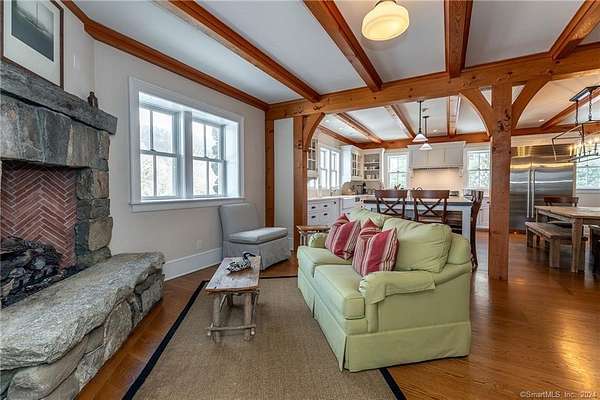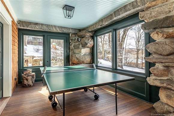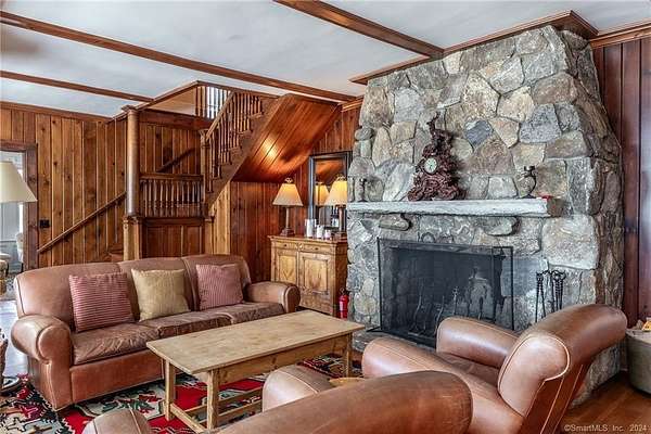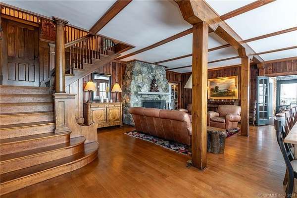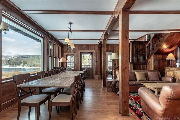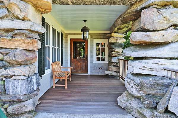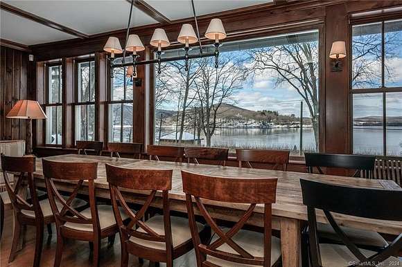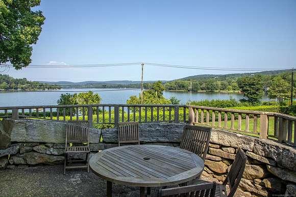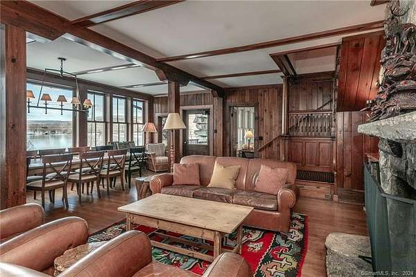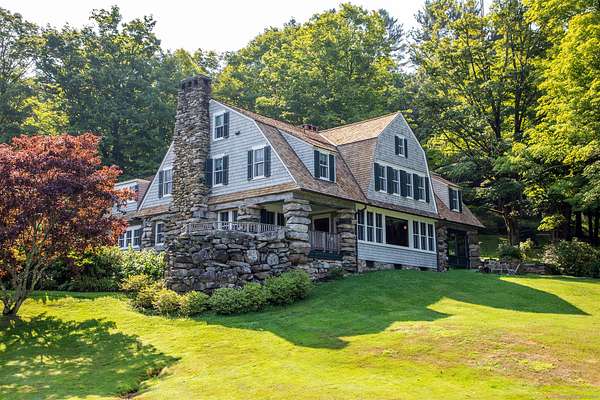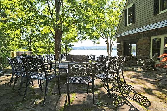 Family Compound - Iconic Boulders Lodge on Lake Waramaug, Washington, CT. Discover a unique piece of American history with the extraordinary Boulders Lodge, an 8,000-square-foot masterpiece less than 2 hours from New York City, beautifully situated on 7 landscaped acres abutting the 516-acre Macriscostas Preserve along the stunning shores of Lake Waramaug in Litchfield County. Originally constructed in 1895 by acclaimed architect Ehrick Rossiter in the Adirondack large stone and shingle, post-and-beam style, and impeccably renovated in 2014, this remarkable property seamlessly blends historical charm with modern luxury, making it an ideal getaway, a permanent residence, or a family compound for generations. The Main House has 8 bedrooms/7.5 baths, large eat-in country kitchen w/ a fireplace, Great Room w/ a fieldstone fireplace, library w/ a fireplace & a family room w/ a wet bar. A large stone terrace w/built-in BBQ and 3 more porches overlook the lake. The 200 ft. of prime lake frontage has magical sunsets, a stationary dock & a 600 sq. ft. lakeside cabin, approved for a 2nd floor expansion to include a small kitchen, bath & family room. Also on the property, a separate Guest House offers potential for a 3-4,000 sq. ft. expansion. A 1-acre wide lawn is ideal for a tennis court &/or pool. The adjacent "Carriage House" is also available, offering an additional 7 bedrooms, a charming two-story barn, 3.2 acres, and another 100 feet of waterfront for ultimate family enjoyment.