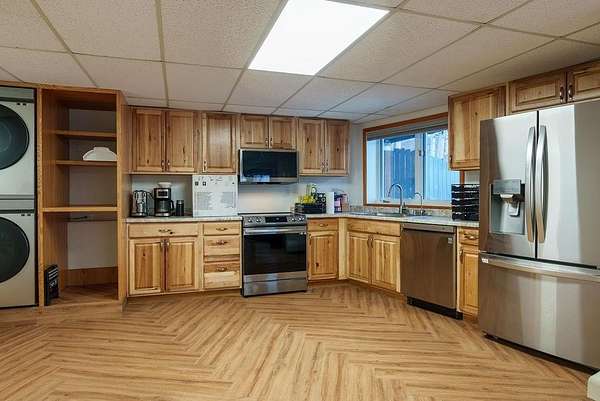 Need space? This one truly delivers, inside and out! Set on 8 private acres just minutes from town, this expansive 6-bedroom, 4-bath home with a 2-car garage offers the ideal setup for multi-generational living, large households, or anyone craving room to spread out. Guests are welcomed through a spacious Arctic entry into a bright and open main level featuring vaulted ceilings and a wall of south-facing windows that flood the home with natural light. The living room flows seamlessly into the dining area and kitchen, creating the perfect space for hosting and everyday living. The primary suite is a standout feature—exceptionally large, comparable in size to a one-bedroom apartment, complete with a beautifully updated private bath that feels like its own retreat. Additional bedrooms across the main and upper levels are generously sized, with ample storage throughout. A charming catwalk loft offers a cozy nook, perfect for reading or relaxing. Downstairs, a fully renovated 2-bedroom, 1-bath mother-in-law unit, completed by Alyeska Builders, provides excellent flexibility for guests, rental potential, or extended living space. Additional highlights include numerous updates, a full backup generator system, and a peaceful natural setting with a creek running through the property. Enjoy the best of both worlds, privacy and tranquility with easy access to nearby trails, parks, golf courses, and skiing. This property offers endless possibilities, come experience it for yourself!