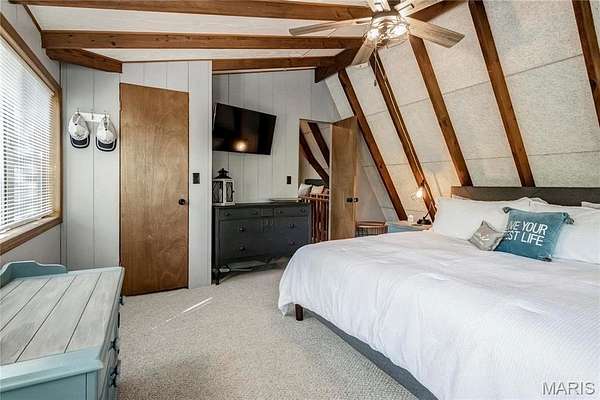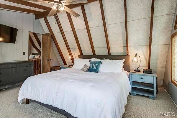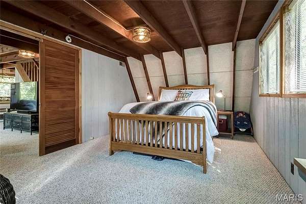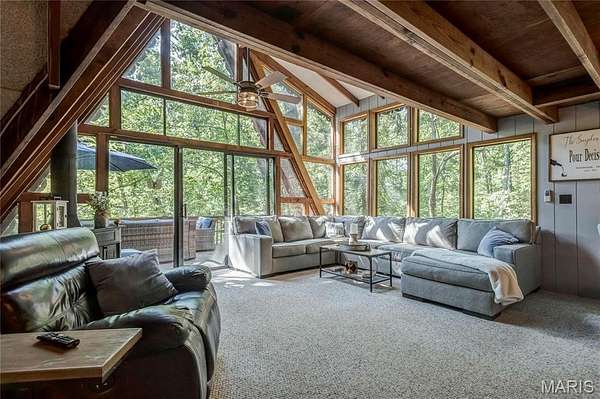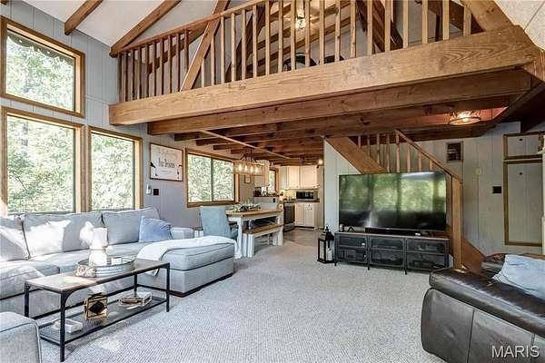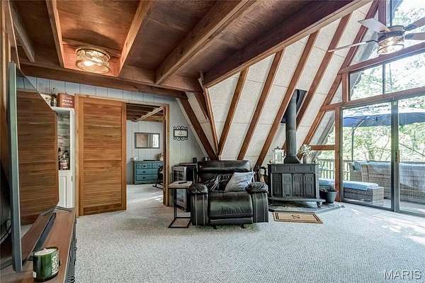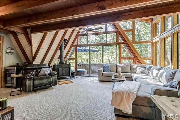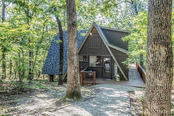 Beautiful chalet surrounded by a gorgeous wooded lot for amazing privacy & tranquility.The open floor plan features a great rm with floor to ceiling windows to allow in plenty of light & nature, a wood burning stove & sliding glass door that leads to your oversized deck perfect for entertaining.Kitchen has white cabinets, plenty of storage including a pantry & newer SS appls.There is a large bedrm on the main level w/ lots of natural light & a full bath.Up stairs you will find a loft area for addl sleeping, another full bath & large bedrm w/vaulted ceiling & surrounded by windows a delight to wake up to.Chalet has all new modern lighting, freshly painted through out, newer roof, outdoor shower, shed for storage & a fire pit for enjoying those relaxing days & evenings.Work away from the office w/highspeed internet & enjoy all the amenities: hiking, beaches, fishing lakes, swimming pool, pickleball, golf & more.Chalet can come with all appliances, canoe, kayak and 16ft pontoon.
