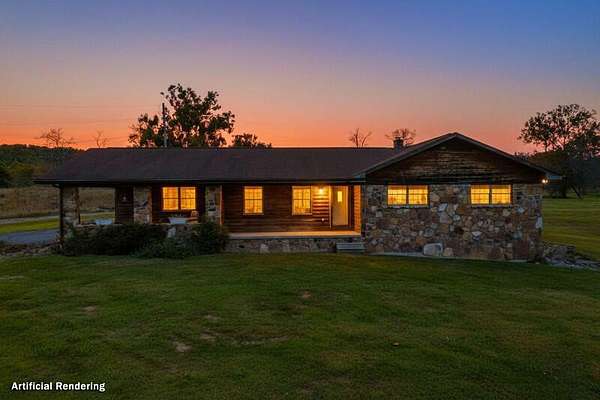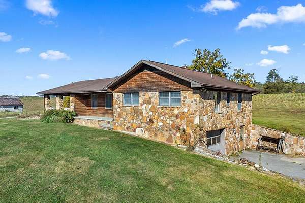 Nice house. Needs very little updating. Selling with 5 acres. Outside of house is stone/rock. 4 BR 2.5 Bath .1car garage in basement With full bath. 2 car carport. Also Laundry on main house is on property that has potential to repair for a rental. THere is 92+ acres availiable to buy with the House and 5 acres or seperate. The basement also Has a "canning" Kitchen and storage room. Thjere is an "0lder" house on the property that may be remodeled. The Additional 92+ acres may be bought with the house at the apprasial price. Bring Offers! The 92+ acres may be bought for 598,000 or with the house and 5 acres (22,900