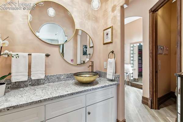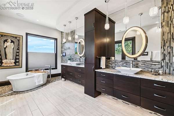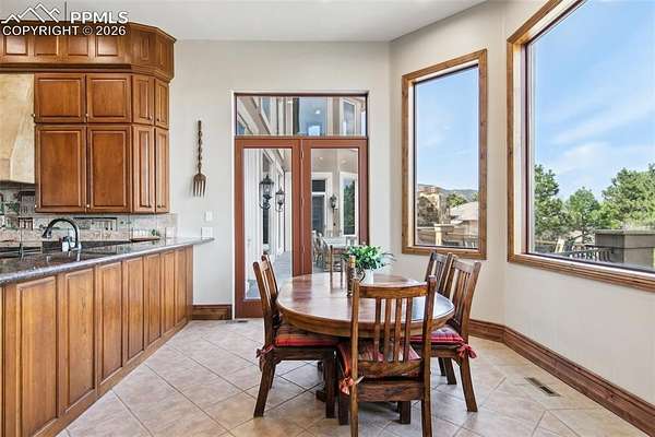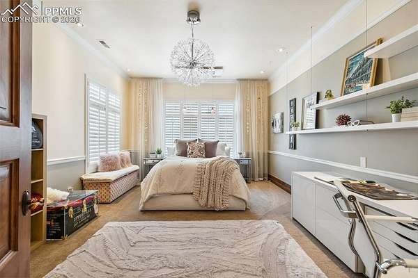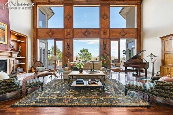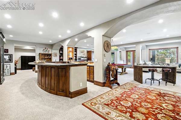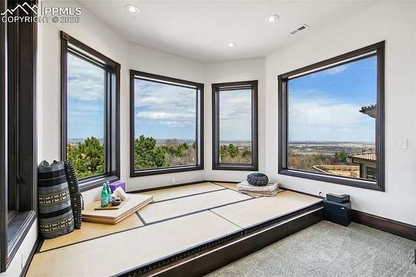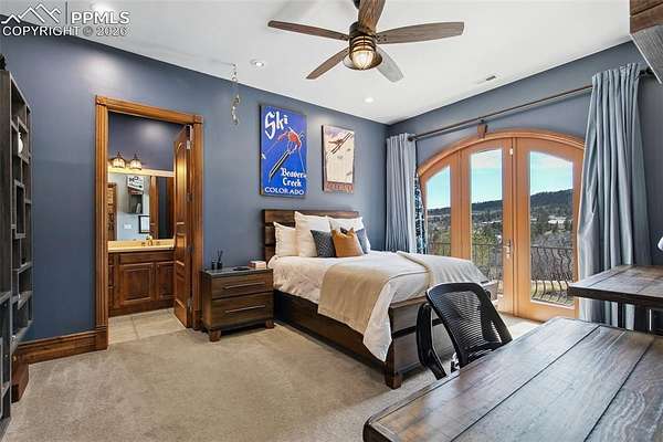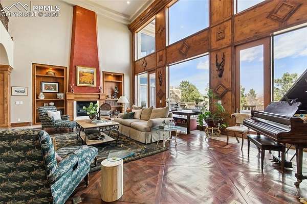 Tucked away in the exclusive Broadmoor community is this remarkable mountainside estate, perfectly positioned just 1 mile from the iconic Broadmoor Hotel and the renowned Cheyenne Mountain Zoo. With generously appointed bedrooms and elegant bathrooms, this home is designed for both indulgence and practicality. Additionally, two fully equipped independent apartments provide exceptional flexibility for guests, family, or staff. As you enter, you are welcomed by a stunning rotunda-style foyer with a suspended arch ceiling. This breathtaking entry leads into the two-story great room, featuring rich walnut paneling and a grand fireplace. The gourmet kitchen with top-of-the-line Wolf Thermador, Kitchenaid & Miele appliances is a dream come true for cooking and entertaining enthusiasts. A 6-car att garage. The exterior of this extraordinary residence features a seamless blend of stone and stucco finishes, w/ views of The Broadmoor's mountain golf course, the lake at the Country Club of Colorado, the Colorado Springs cityscape extending to the airport and beyond, as well as the Cheyenne Mountain and Pikes Peak.Additionally, the home is within reach of some of the finest public and private schools in Colorado, including the prestigious Cheyenne Mountain District 12, Colorado Springs School, St. Mary's Catholic School, and Fountain Valley School. So many unique features: Fully fenced yard with automatic front gate, Heated driveway, Indoor golf simulator, Imported Italian marble flooring throughout the main floor, Custom painting under porte cochere with real gold inlay, same as The Broadmoor, tennis court and basketball court,Trampoline, Ample office space including full conference room with seating for 10, home office w fireplace, bathroom/shower, closet, television and coffee/winebar, en suite executive office attached to handicap accessible guest suite. Independent living apt w/elevator. NEW carpet, roof, windows, exterior stone & stucco,paint, deck/patio, alarm system