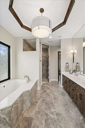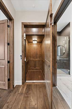 - 1 st Floor Bedroom, 1 st Floor Full Bath, Beamed Ceilings, Bookcases, Built-In Features, Cathedral Ceiling(s), Elevator, Open Floorplan, Quartz Counters, Vaulted Ceiling(s), Walk-In Closet(s), Wet Bar